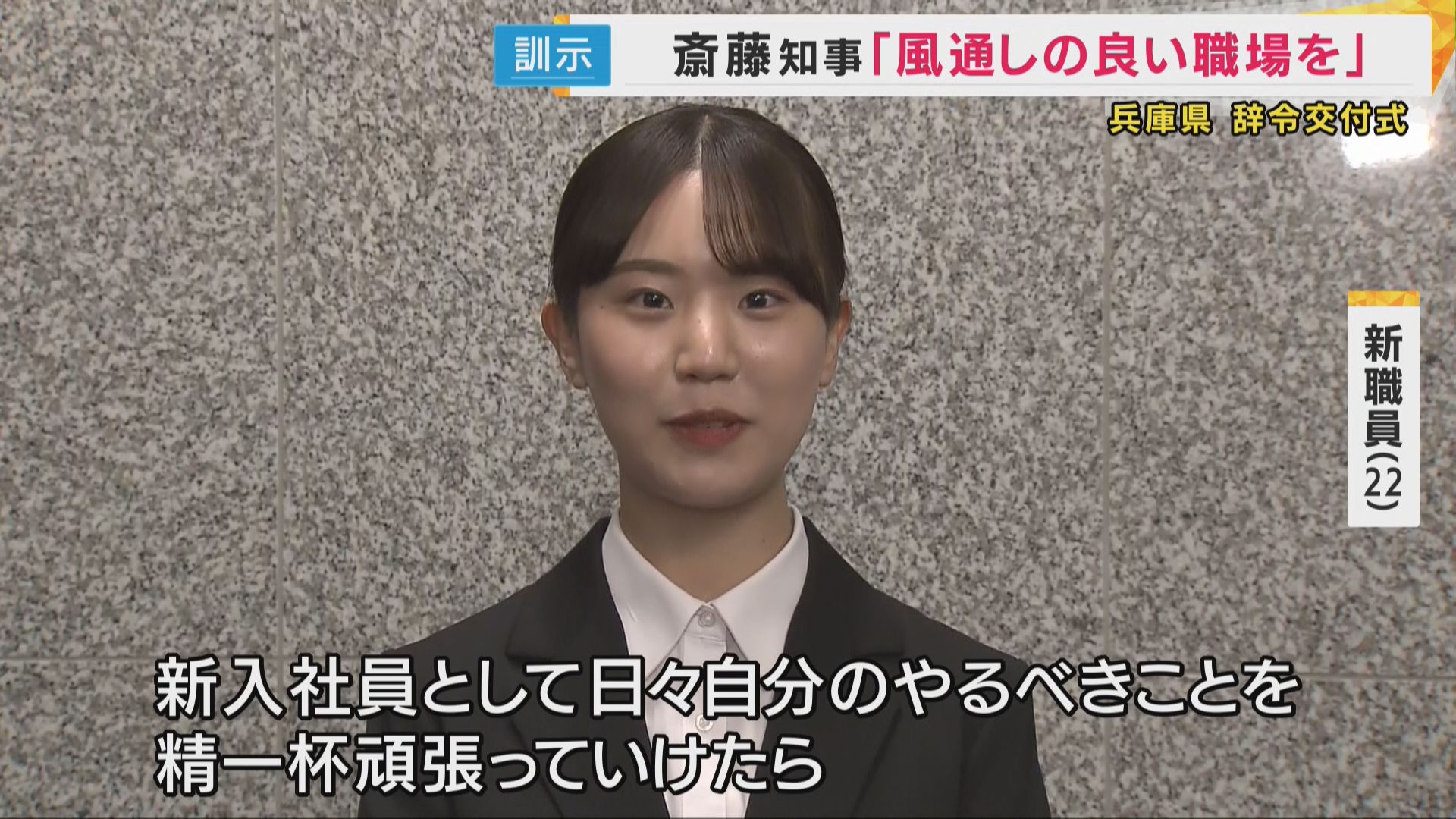 兵庫県の辞令交付式では斎藤知事が「風通しの良い職場を作る」と訓示 関西各地で入社式