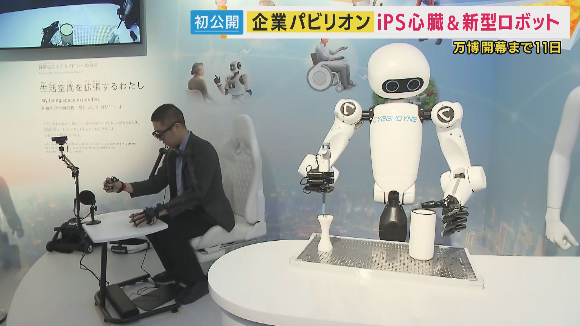 またこちらには、人手不足解消の救世主になるかもしれない新型ロボット。特殊なアームとメガネを装着すると…。