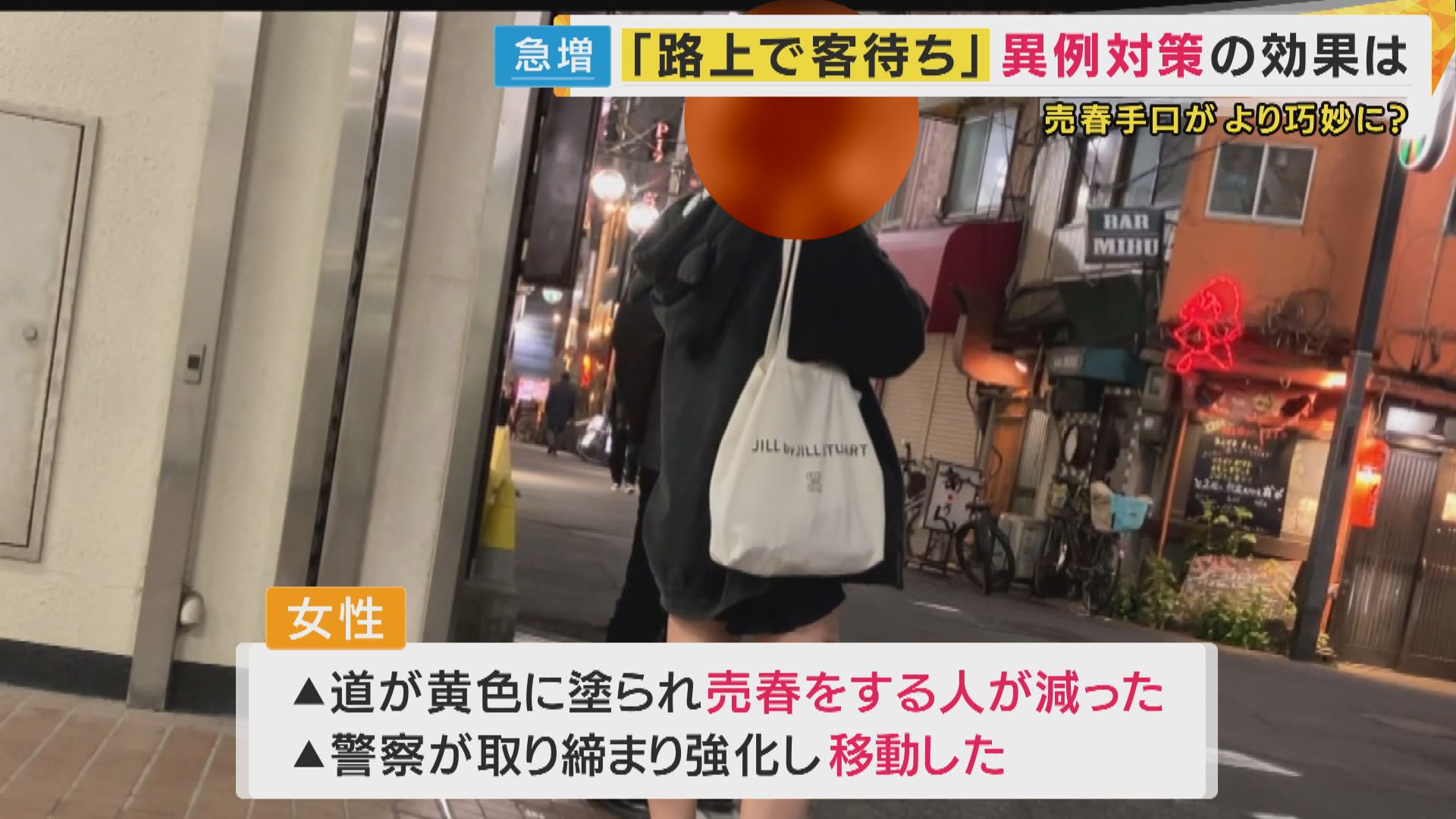 この場所では、おととしから去年にかけて、いわゆる「立ちんぼ」が急増していました。