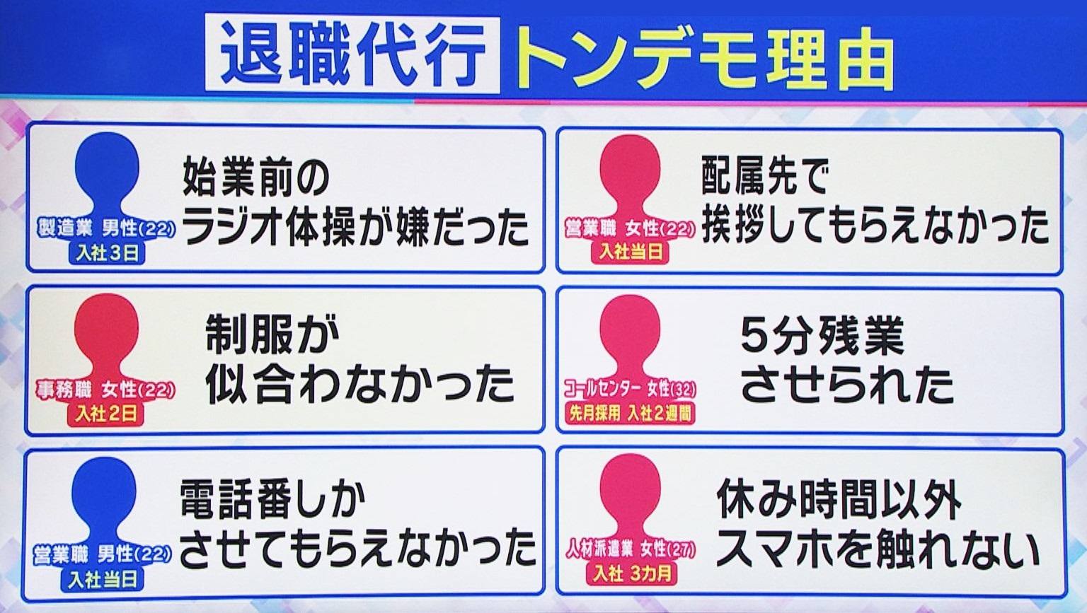 退職代行業者「OITOMA(オイトマ)」では、4月9日時点で、すでに今年4月入社の新入社員から131件の退職代行の依頼が来ているということです。
