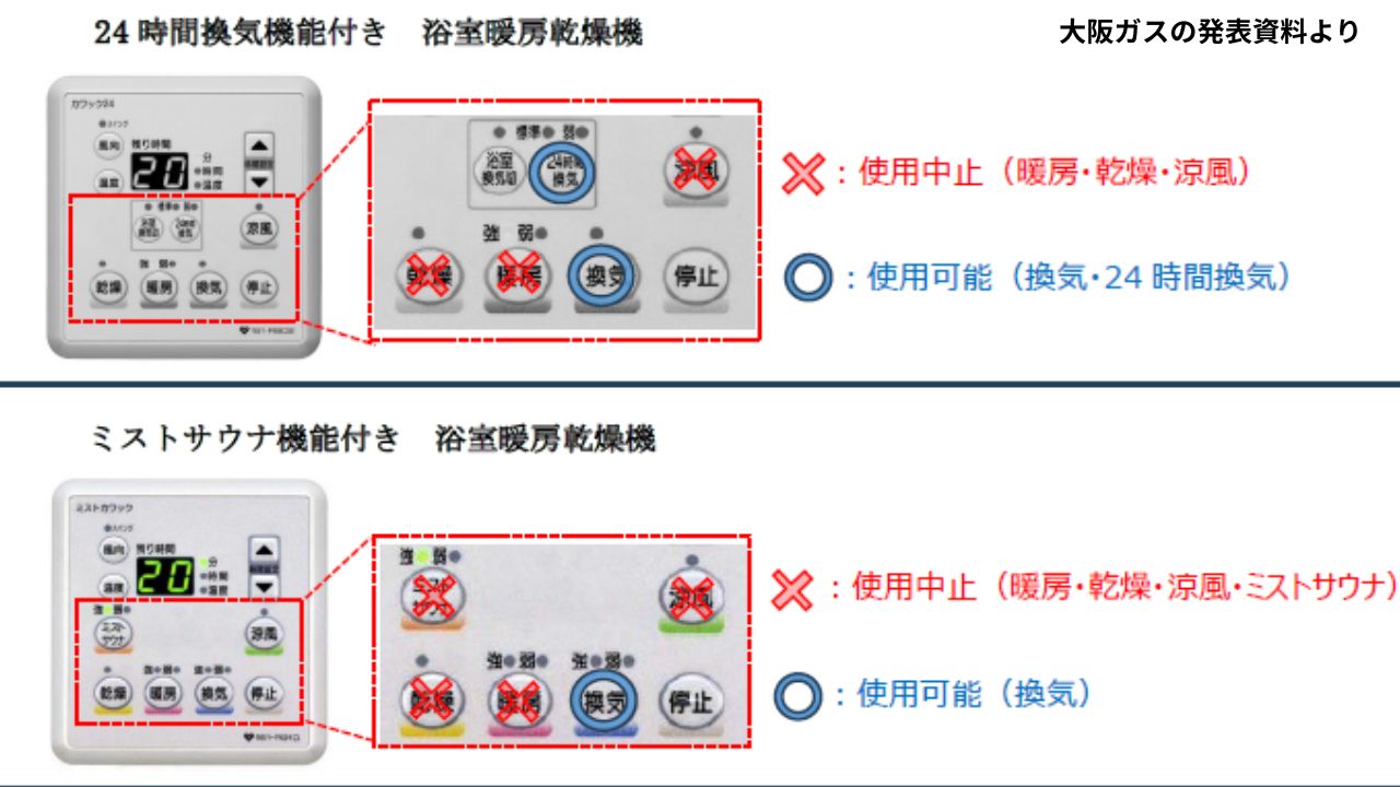 リンナイ製造の浴室暖房乾燥機 「火災の恐れ」でリコールに 大阪ガスで1万台超が対象 部品取り付けなど対応へ