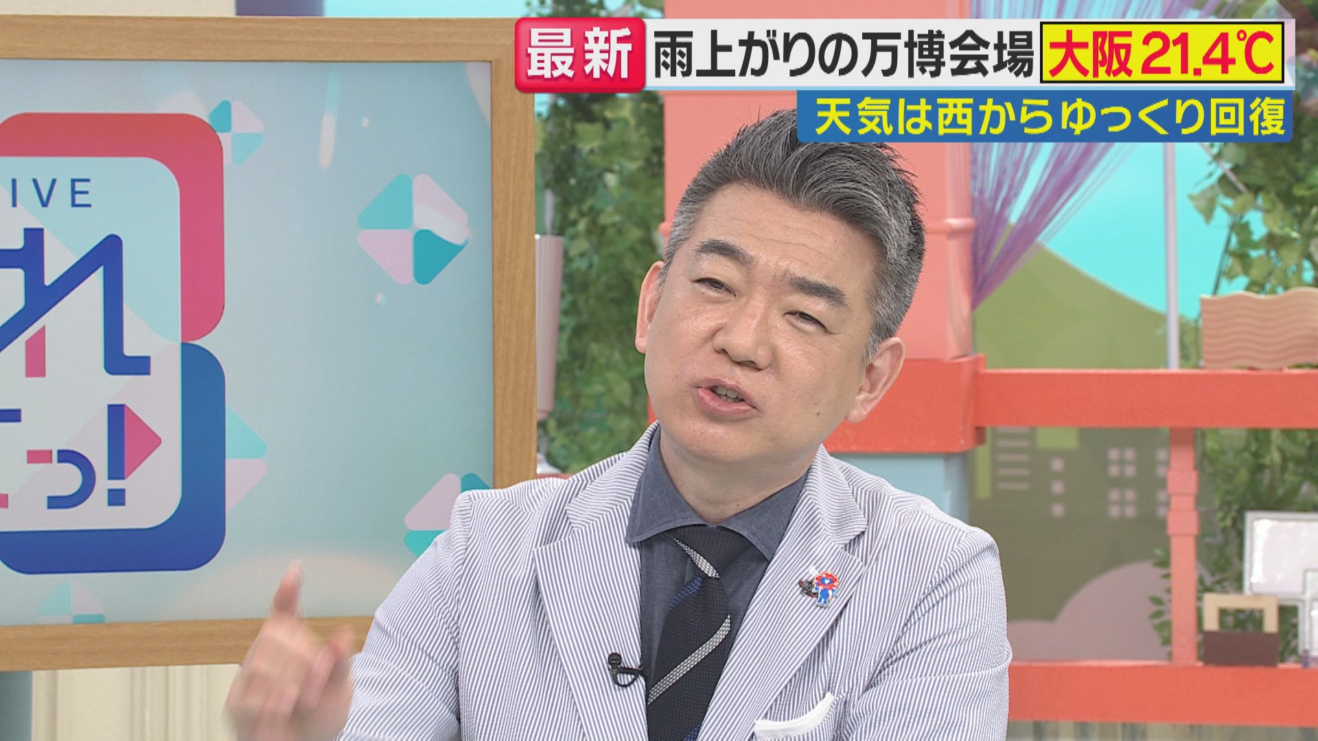 橋下氏は「この地で万博をやろうと言い出した人天才!」と自画自賛する一方、来場者数が見込み数の「1日当たり15万人」を下回っていることについて、「10万人が適度」と持論を展開しました。