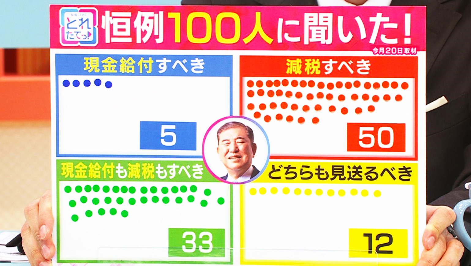 半数の50人が『減税すべき』ということで、『現金給付すべき』という声を多く上回っている状況です。