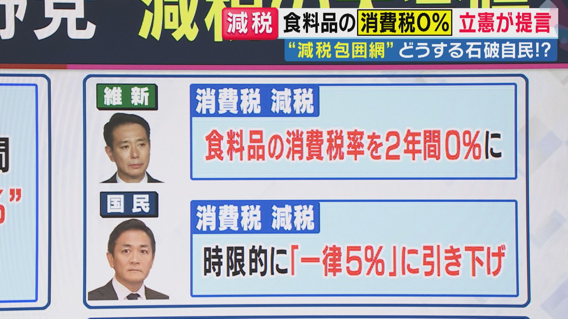 そして日本維新の会も食料品の消費税を、2年間「ゼロパーセント」、国民民主党は食料品に限らない消費税減税を主張しています。