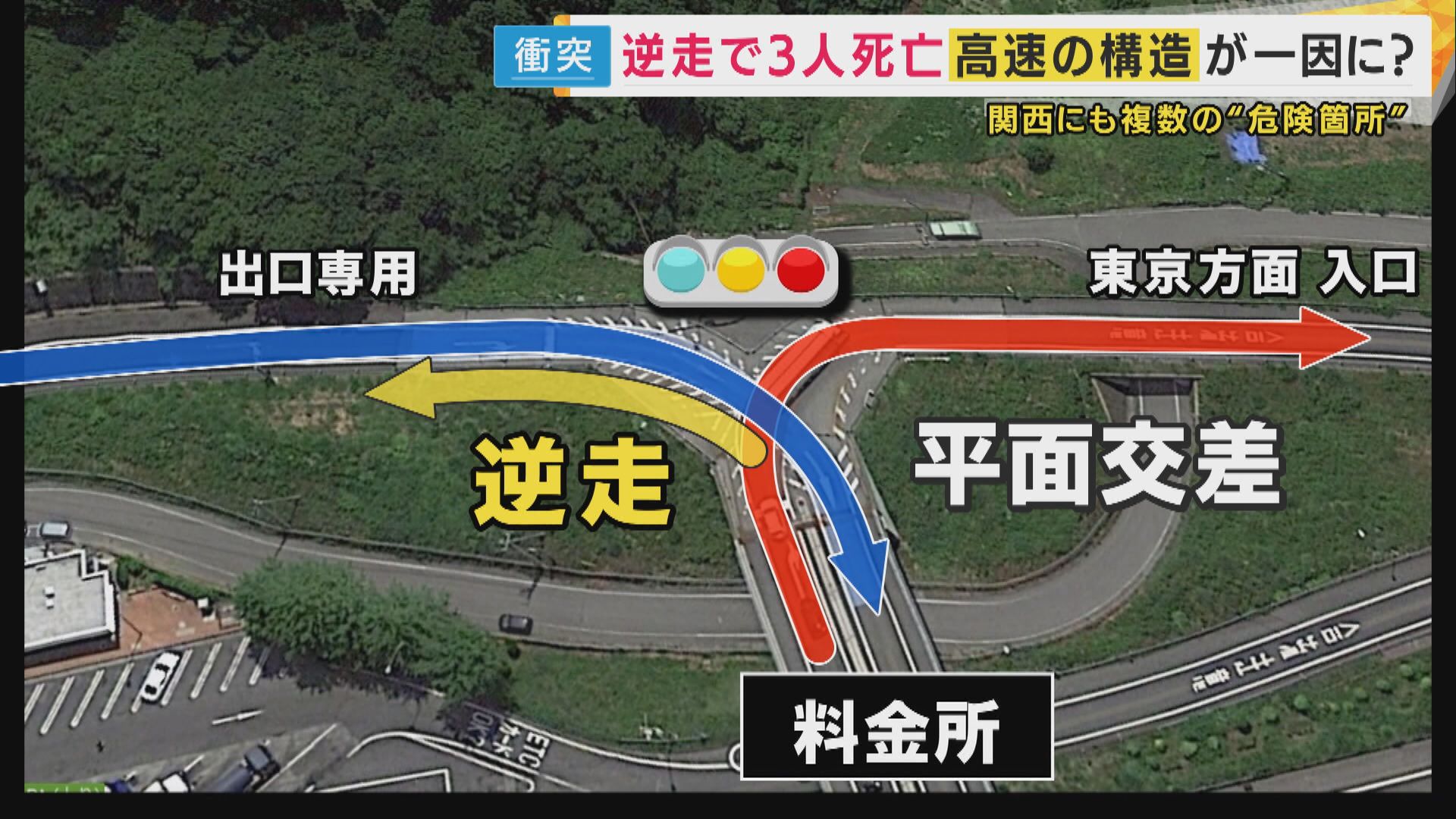 「逆走」きっかけ3人死亡交通事故 年間約200件高速道路の逆走 入口の構造自体問題だがコスト課題
