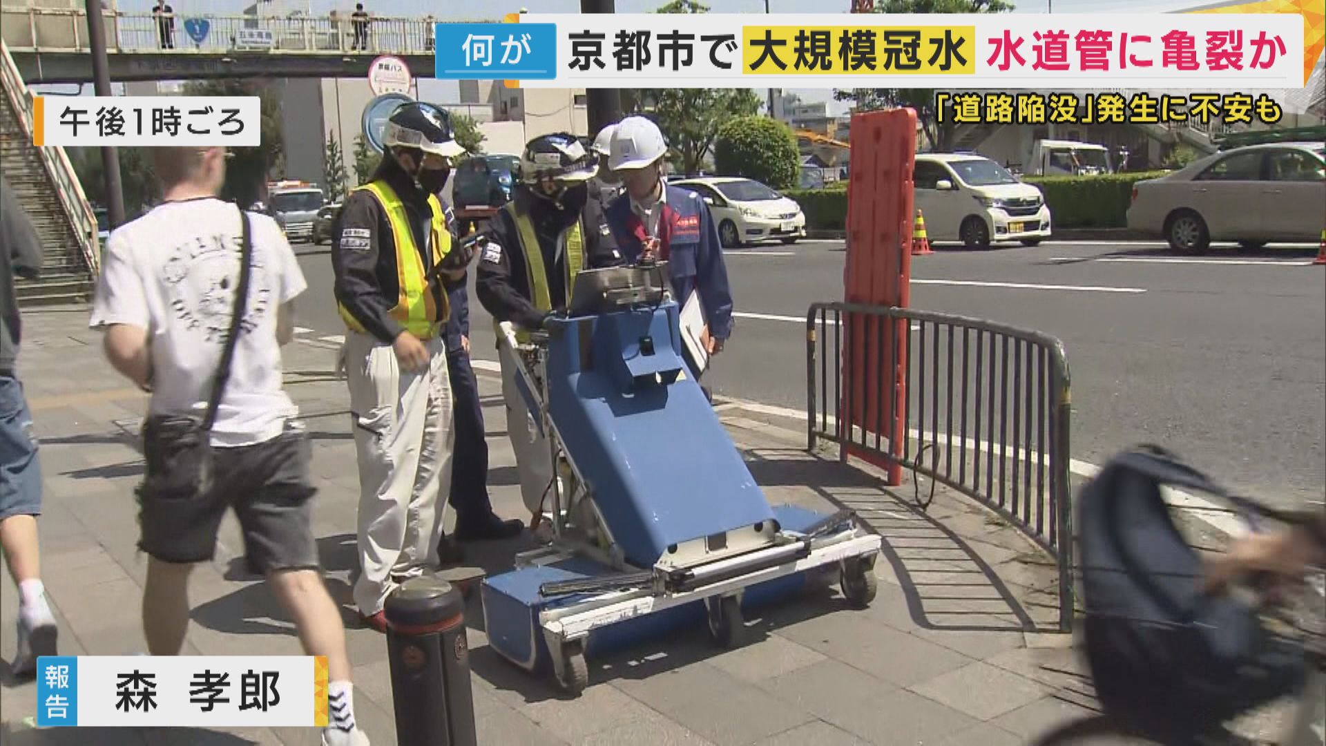 「午後4時からは京都市の記者会見が行われ、市によると今回事故が起きた現場周辺では、すでに古い水道管を交換する工事が行われていたのですが、事故が起きた場所はこれからその工事が行われる予定だったということでした」