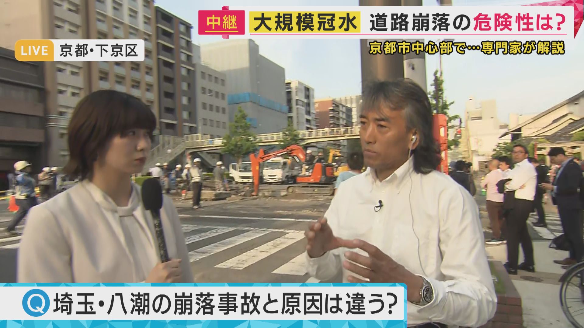 「(京都市で原因となった)上水道管は割ときれいな水が流れていますの、そういう意味では原因は違う。それから八潮市の時は10メートルの大深度で、大口径の管が壊れて土砂が流れて、それによって地盤が陥没したというのが原因です。今回は深さ1メートルのところで30センチの管ですので、違いは明確にあると思います」