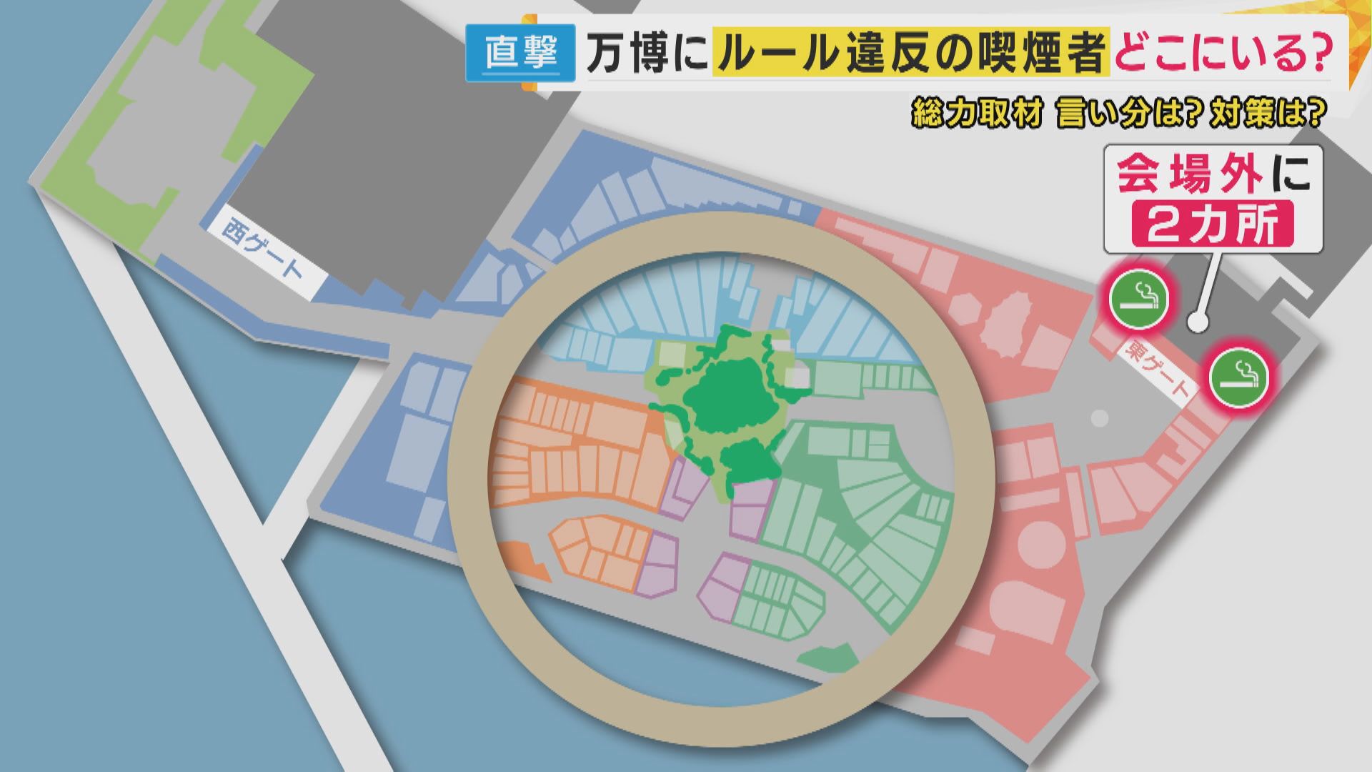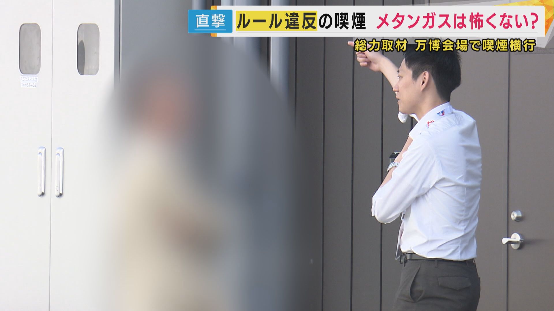 (Q.パビリオンの関係者が会場内で喫煙。「喫煙所遠い」、「西ゲートに作っても何も変わらない」と…)