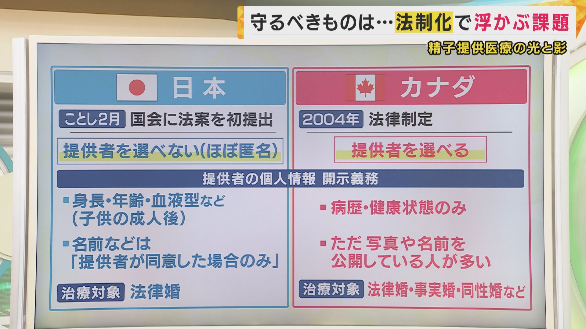 日本では提供者の情報がありませんから、子供に非常に限られた情報しか伝えることができない。カナダは親が提供者を選べる状況になっています。身元の特定まではしないけど、どういった人柄かというところまで、親もちゃんと知っている状況で子育てができるところがずいぶん違うなということですね」