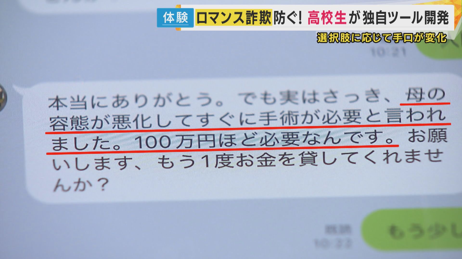 「結婚式の費用」などと金を要求ロマンス詐欺 対策に『体験ツール』高校生が開発「引っかかる前に知って」