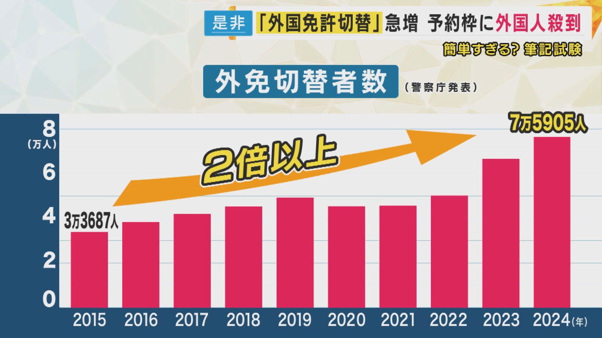 この「外免切替」で日本の免許を取る人の数は、10年前と比べ倍以上に増加していて、中でも多いのが、ベトナム人と中国人による切り替え。