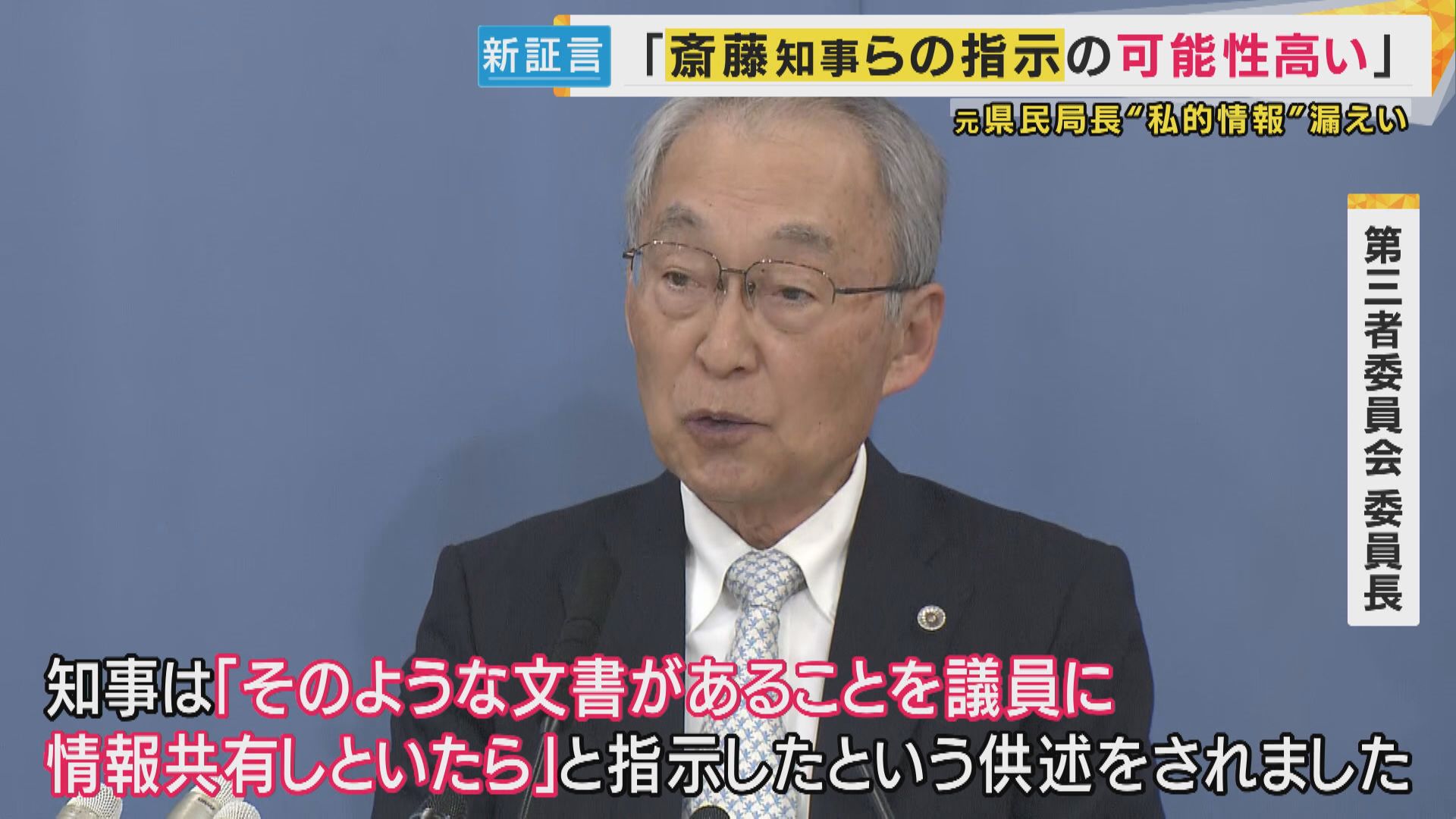 元県民局長の私的情報 当時の総務部長が漏洩 第三者委員会「斎藤知事や片山前副知事の指示の可能性高い」