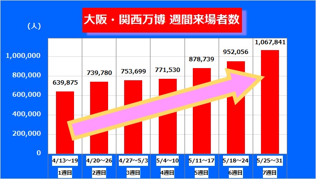 【大阪・関西万博】週間来場者100万人突破!伸び続ける来場者数 7週目は1日平均15万人を上回る