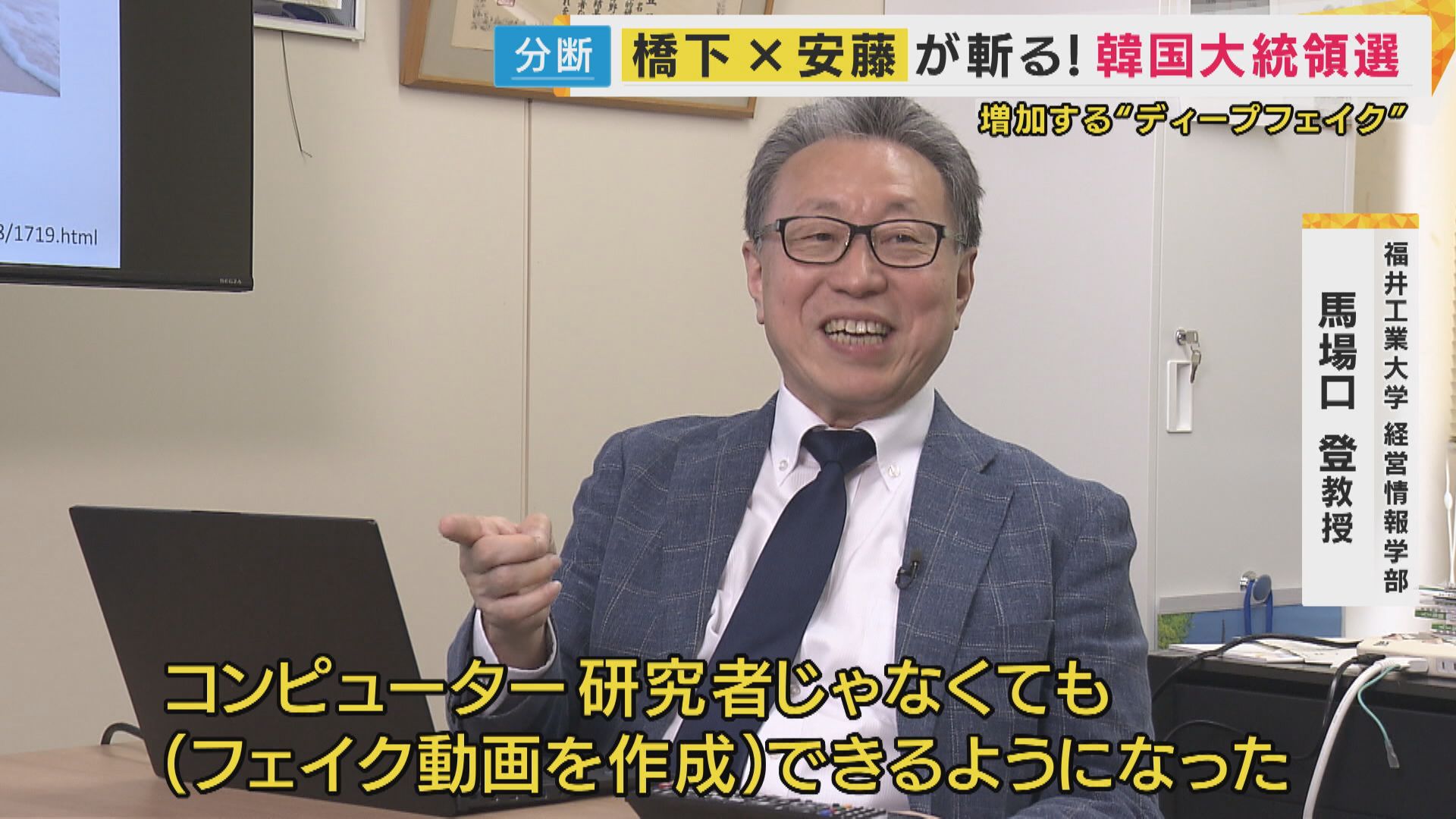 馬場口教授は、誰でも簡単に作ることができるようになったことが、選挙戦でのディープフェイク動画の急増理由の1つと指摘します。