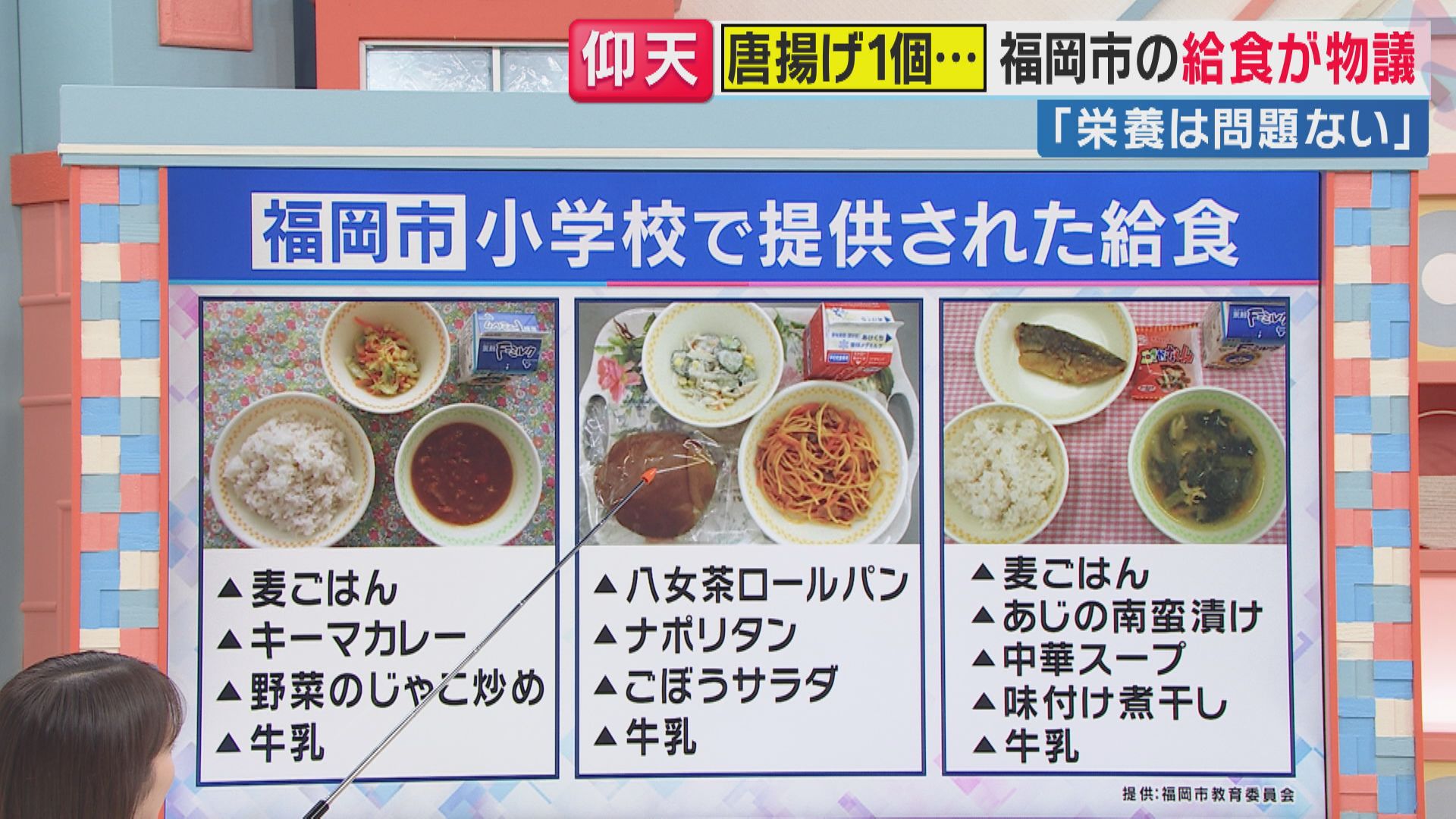 担当者はこのメニューについて、「市の基準の600kcalはちゃんと満たしている」としていて、唐揚げ1個については、「児童の配膳であったり、調理の手間などを考慮し、昭和50年代から大きめの1個で提供していて、物価高騰により個数や大きさを変更したものではない」ということです。