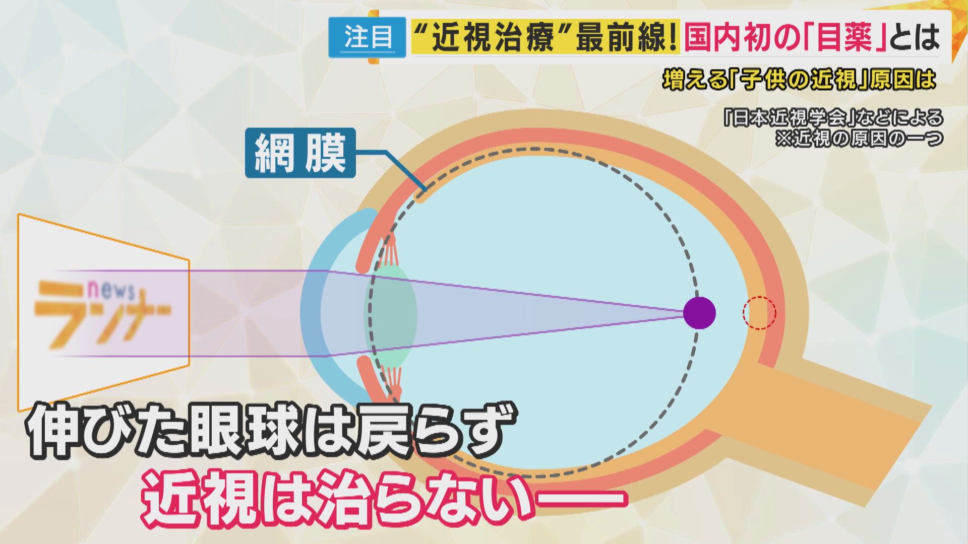 【京都大学辻川教授】「近視になると緑内障、それから網膜剥離のリスクが高くなることが知られています。最近は以前に比べて近視の若年化が進んでいるから、そういう大きな視力障害の原因となる可能性は高い」