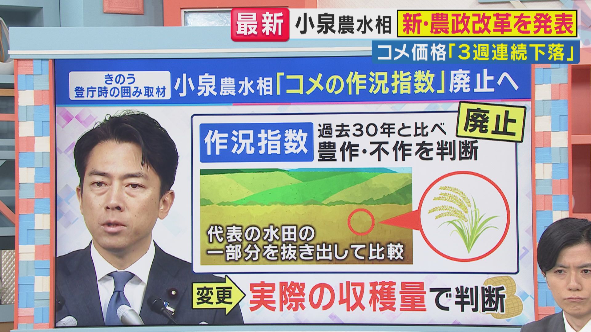 17日、関西テレビ「旬感LIVEとれたてっ!」に出演した政治ジャーナリストの青山和弘さんは、作況指数に関する改革について、「当たり前のことをようやく小泉農水相が踏み切った」と指摘しました。