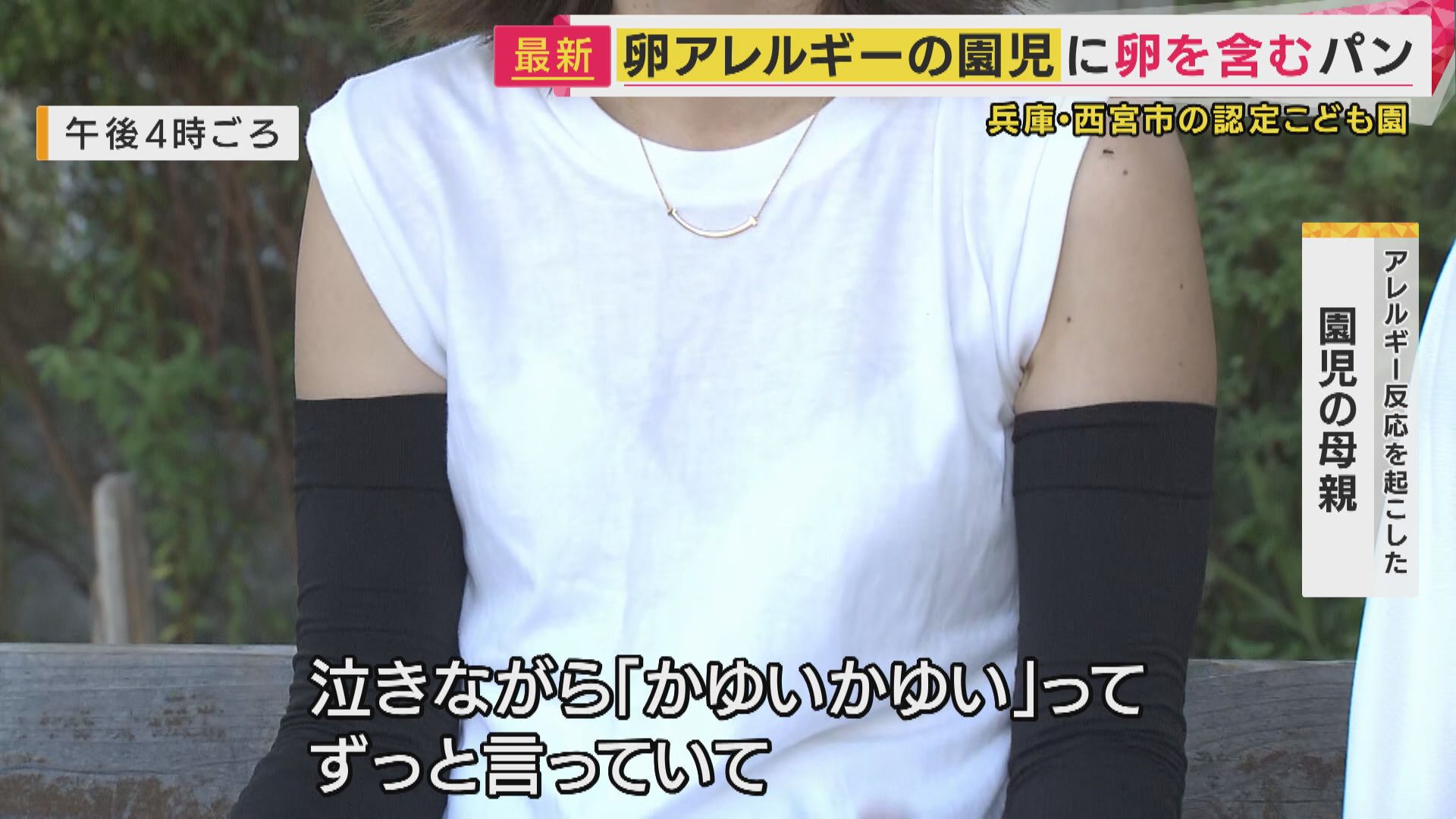 【搬送された園児の母親】「泣きながら、かゆいかゆいってずっと言っていて、全身腫れあがって真っ赤かでかきむしってっていうのがかなり長い時間続いていた」