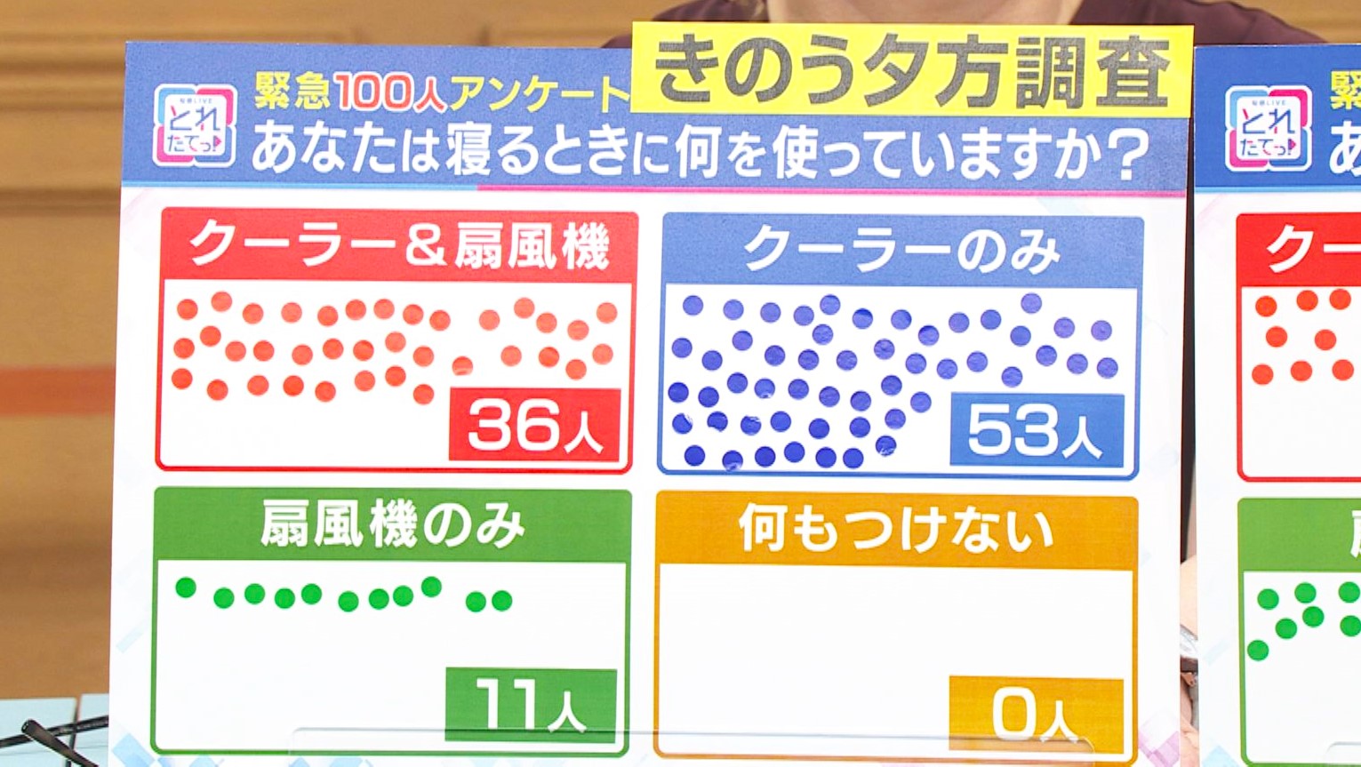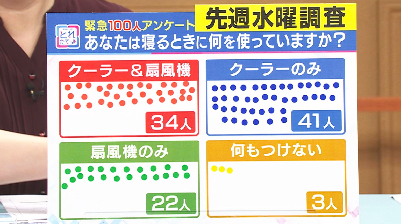関西テレビ「旬感LIVEとれたてっ!」 では、6月18日(水)と23日(月)の2回にわたって、大阪の街の100人に「あなたは寝るときに何を使っていますか?」というテーマで、アンケートを実施しました。