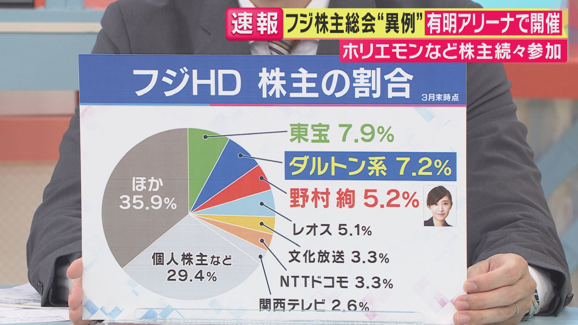 きょう=25日開かれたフジ・メディア・ホールディングスの株主総会の冒頭で、投資会社のダルトン側の株主提案が否決され、投票用紙がアンケートになったと発表がありました。