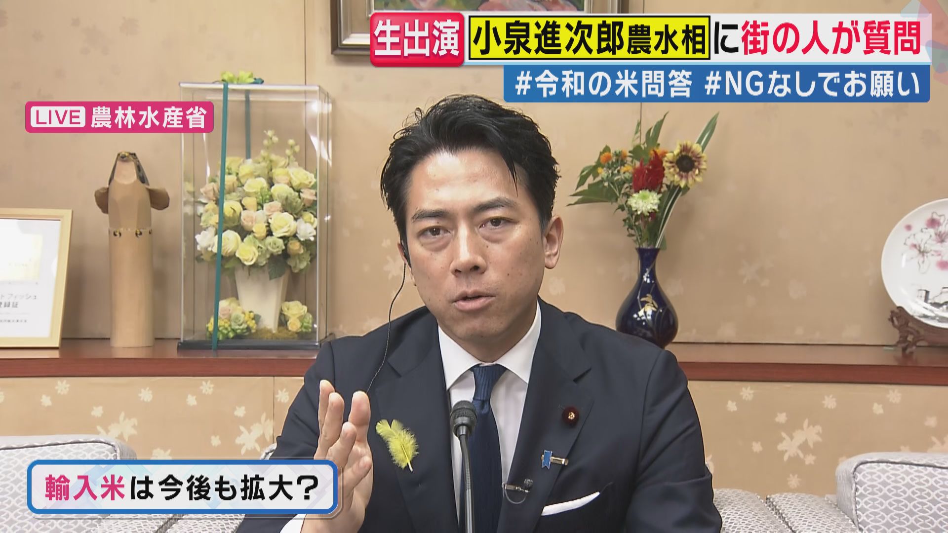 【小泉農水相】「それはもちろんです。私からすれば、農家の皆さんに対して必要とされるJAであり続けてくれれば、それはJAの役割を果たしたということになると思いますが、一方で、農協に対してお米の流れも減ってるんですよね。 農家の皆さんが使うダンボールや肥料や農薬や農業機械、こういったものを農業資材と言いますが、農業資材を海外から輸入をして、それを高く売るのが、JAグループの仕事ではありません。