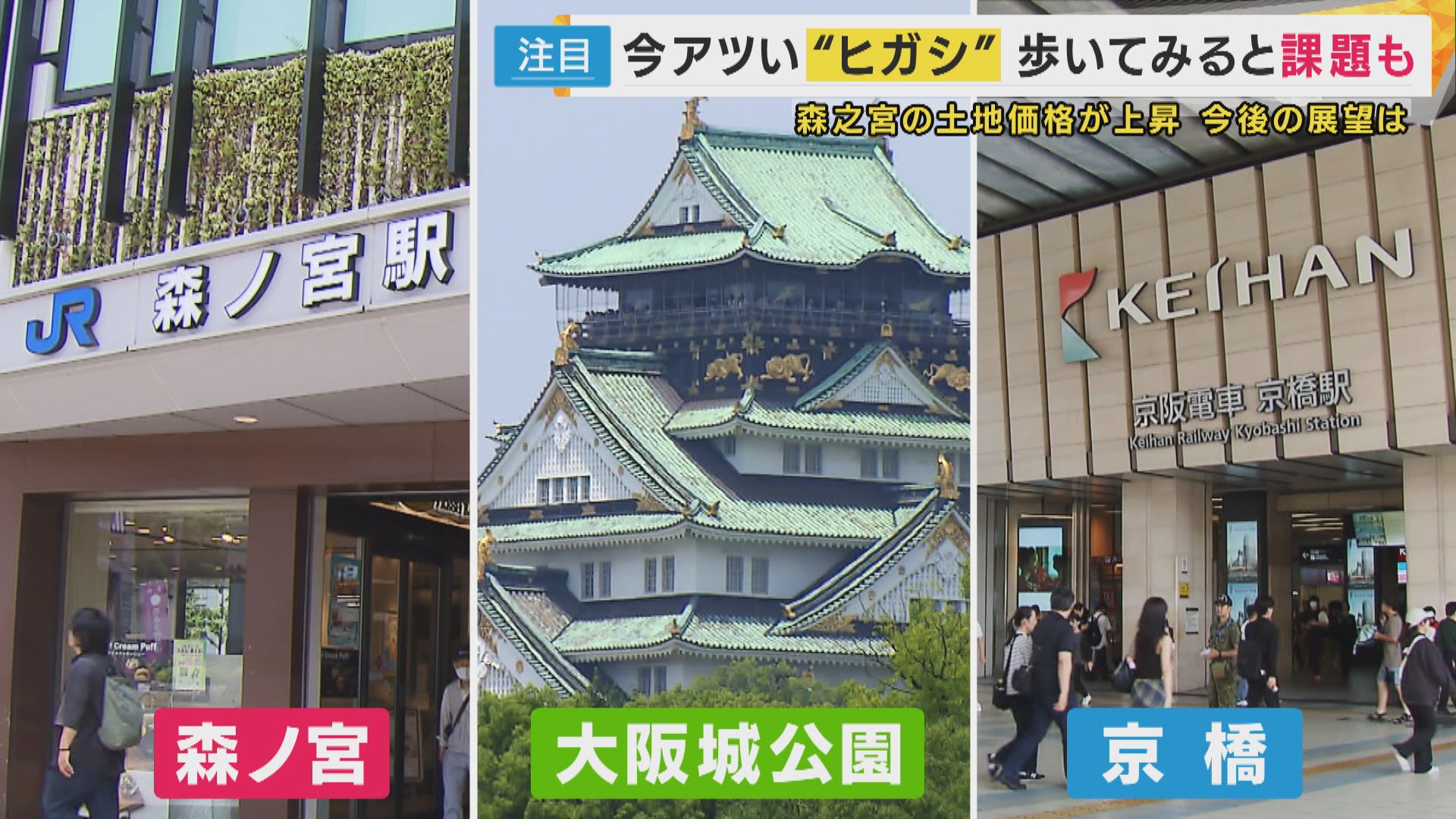 【記者リポート】「ヒガシエリアの中心とされる森ノ宮駅からスタートします。JRと大阪メトロが走る駅の近くは、飲食店や商業施設もあり、非常ににぎわっています」