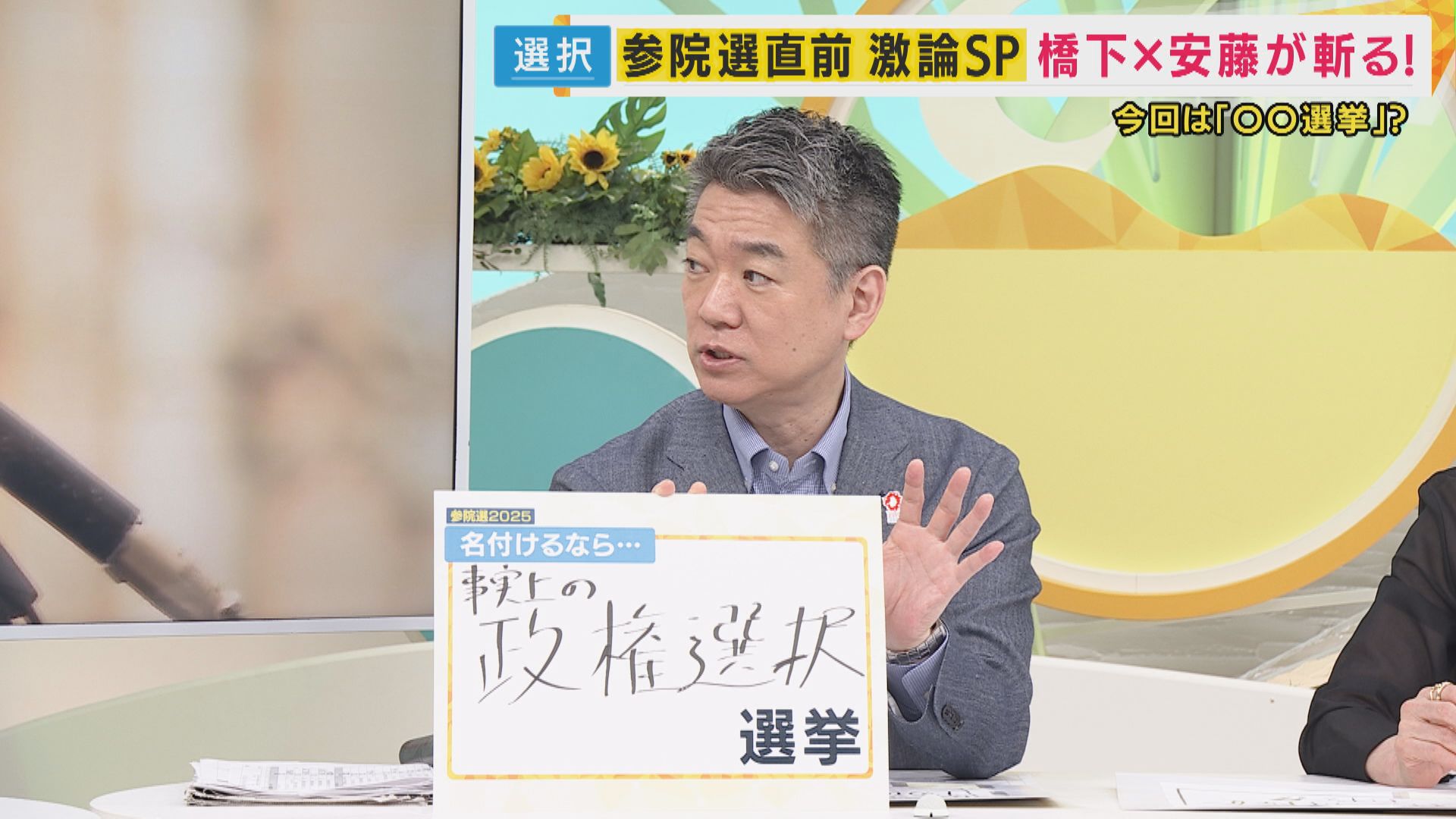 番組では橋下徹氏と安藤優子氏に今回の選挙を一言で表現してもらいました。