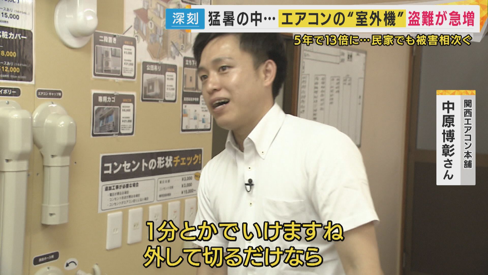 【関西エアコン本舗 光本竜也代表】「この2、3年で10倍くらい、盗難の相談が増えたというのは聞く。(うちでも)ことしに入って4件ほど、(盗まれたという)問い合わせがありました。4件とも戸建てですね」