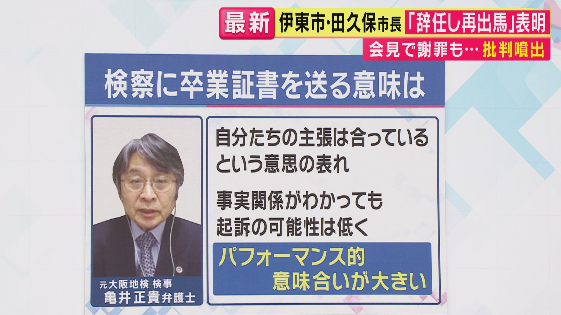 「学歴詐称問題」静岡・伊東市長 『卒業証書』検察に提出へ 元検事「パフォーマンス的な意味合い大きい」