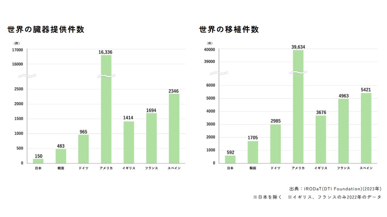 臓器移植の件数は人口が半分以下の韓国が日本のおよそ3倍、アメリカは67倍ほど。