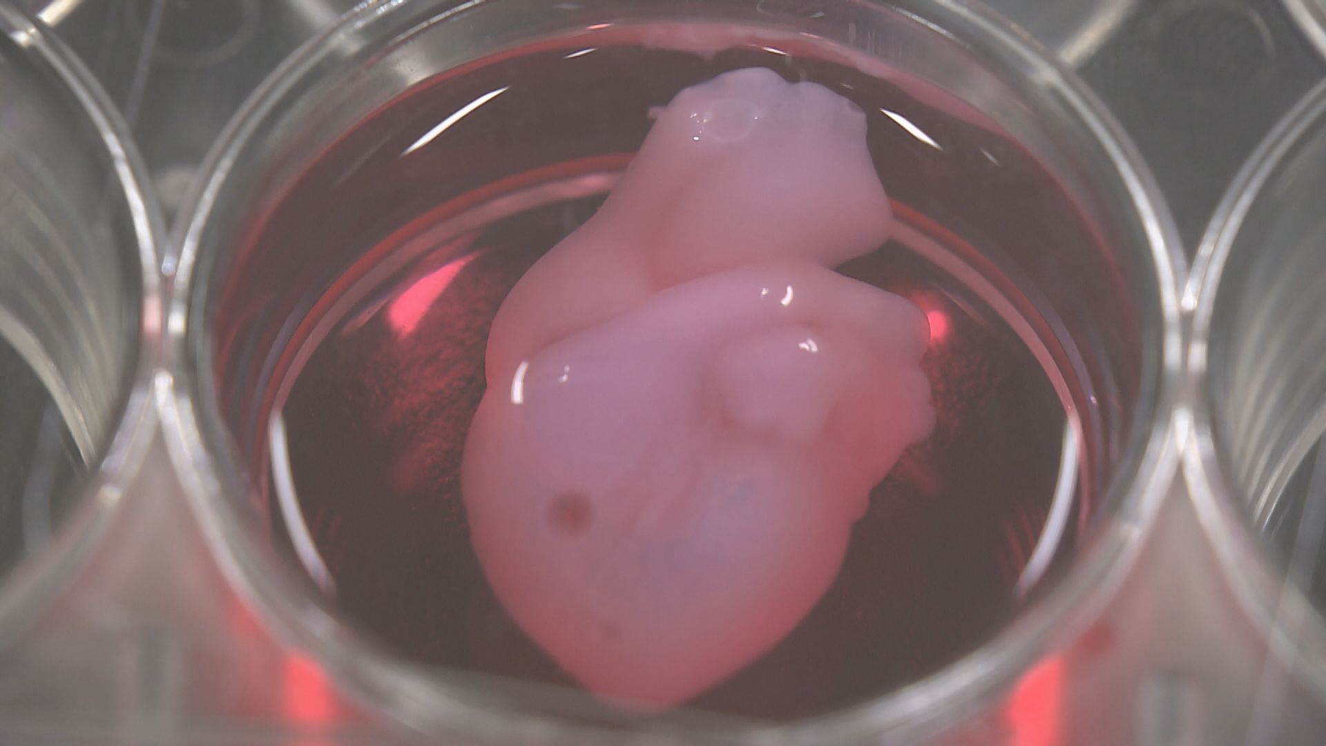 けれども、iPS細胞から作られた心筋細胞およそ1~2億個が、培養液の温度が人の体温に到達すると自発的に動き、実際の心臓のようにドクドクと拍動する。