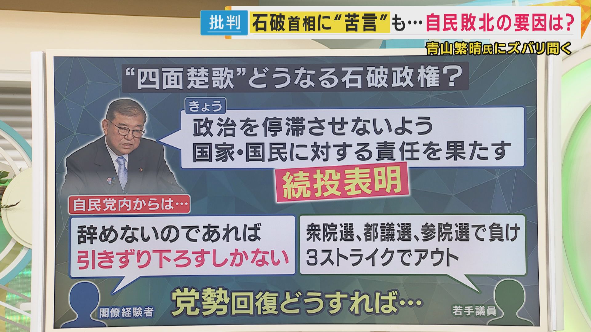 国民からも、そして党の内部からも厳しい評価をつきつけられた石破総理に対し、青山議員はズバリ、「お辞めにならないのであれば、辞めていただきます」と求める意向を明かしました。