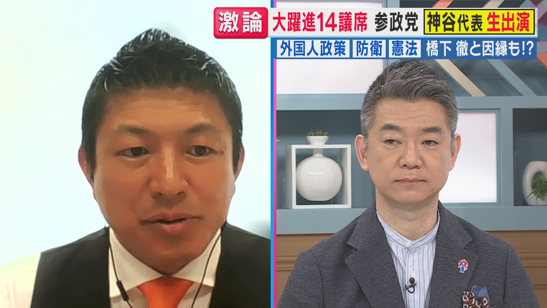 21日、関西テレビの「旬感LIVEとれたてっ!」では、橋下徹氏と参政党の神谷宗幣代表が生放送で、激論を交わしました。