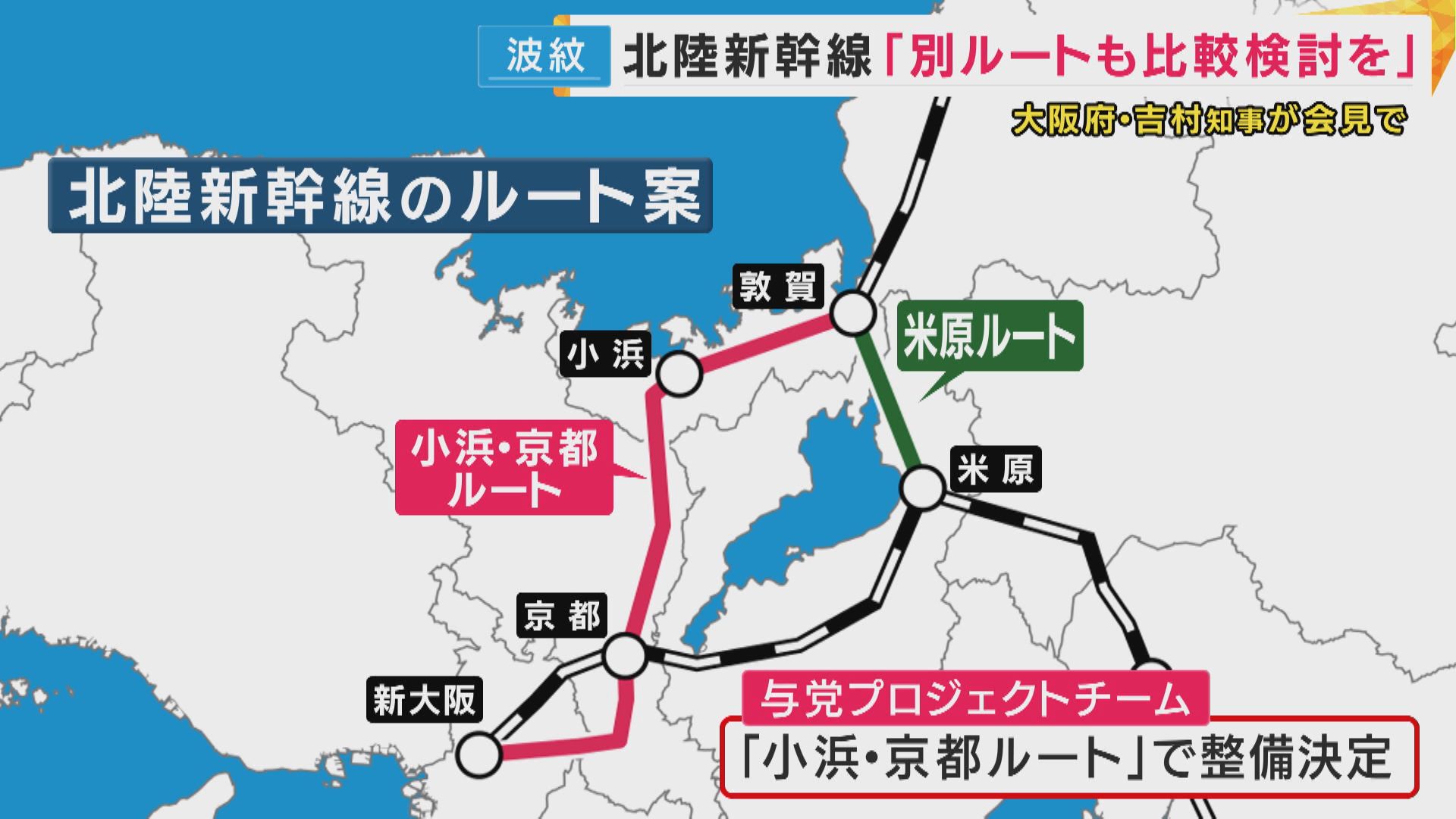大阪府の吉村知事は22日の定例記者会見で、北陸新幹線の大阪までの延伸ルートについて、「『米原ルート』も比較検討して判断を」と述べました。