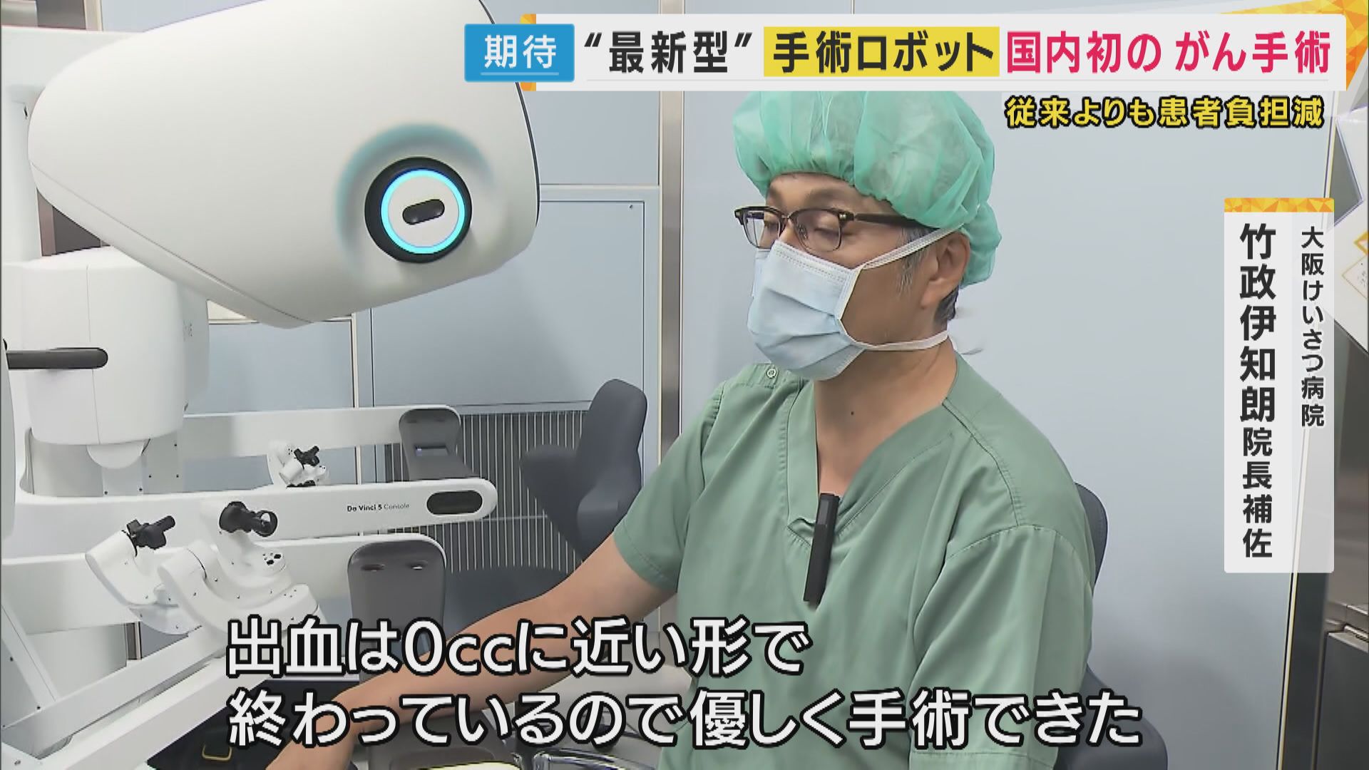 【大阪けいさつ病院 竹政伊知朗院長補佐】「ほとんど出血はゼロccに近い形で手術は終わっているので、優しく手術できたと思う。自分のリアルな感覚をそのまま機械が再現するので適切に手術ができるだろうし、期待感を感じることができた」