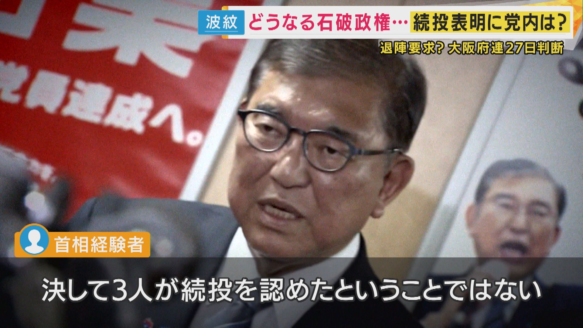 ある総理経験者は「進退について直接言及はしておらず、石破総理を引きずりおろすことはない」としつつも「カッコよくやめるなら、本当はきのうだった」「決して3人が続投を認めたということではない」と話しています。