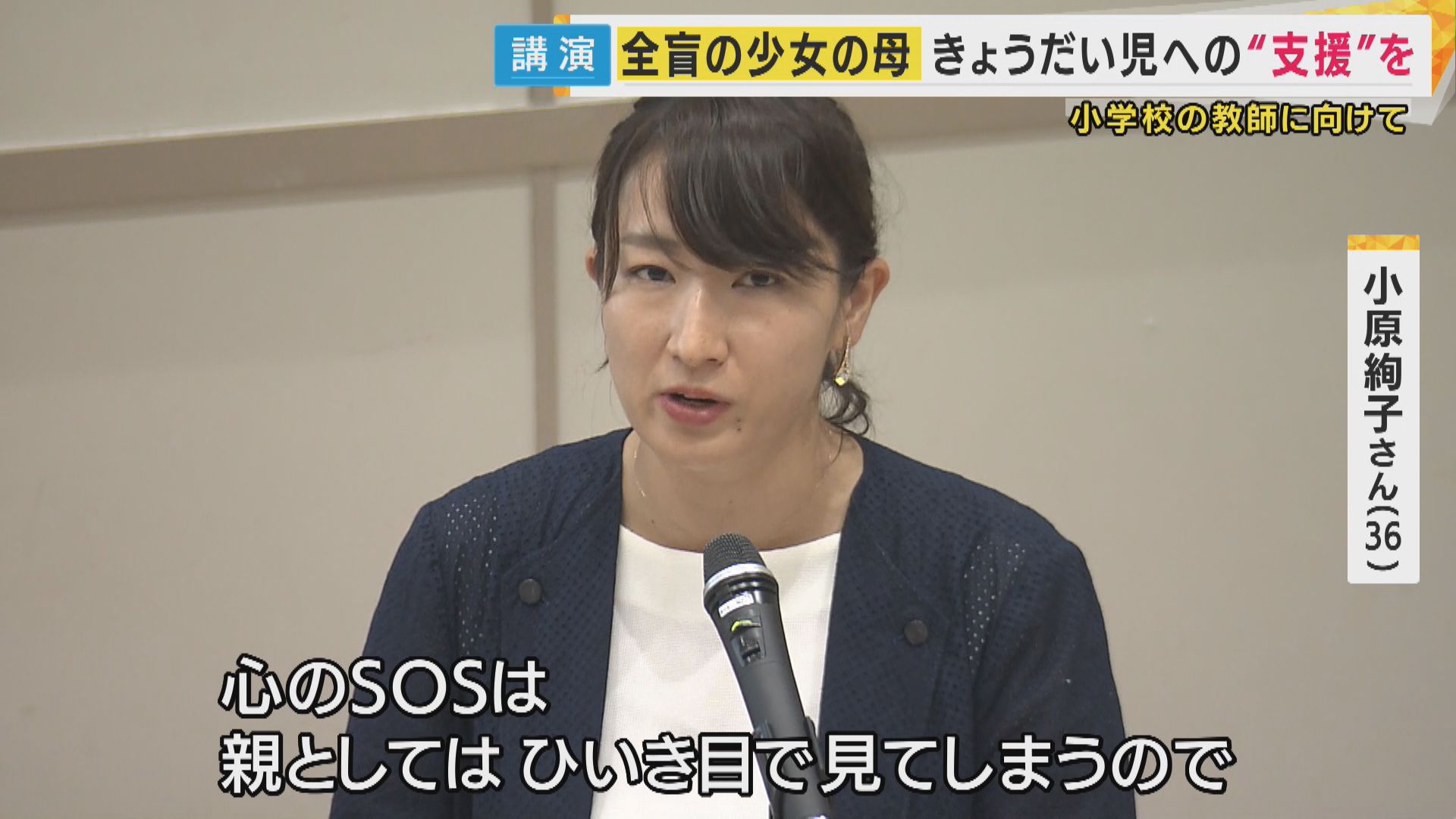 小児がんで全盲となった少女の母親が、小学校の教師に対し、難病などをかかえるきょうだいがいる子供への支援を呼びかけました。