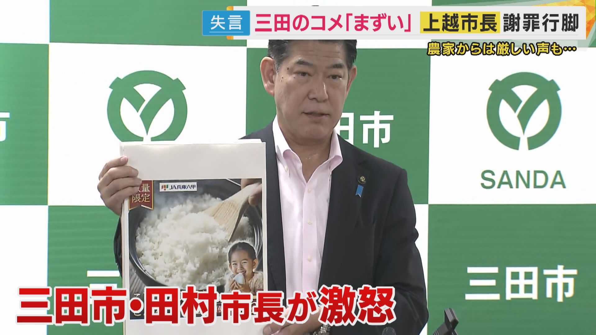 兵庫県三田市の米を「まずい」と発言した新潟県上越市の市長が、29日、三田市を訪れ、米農家などに直接謝罪しました。
