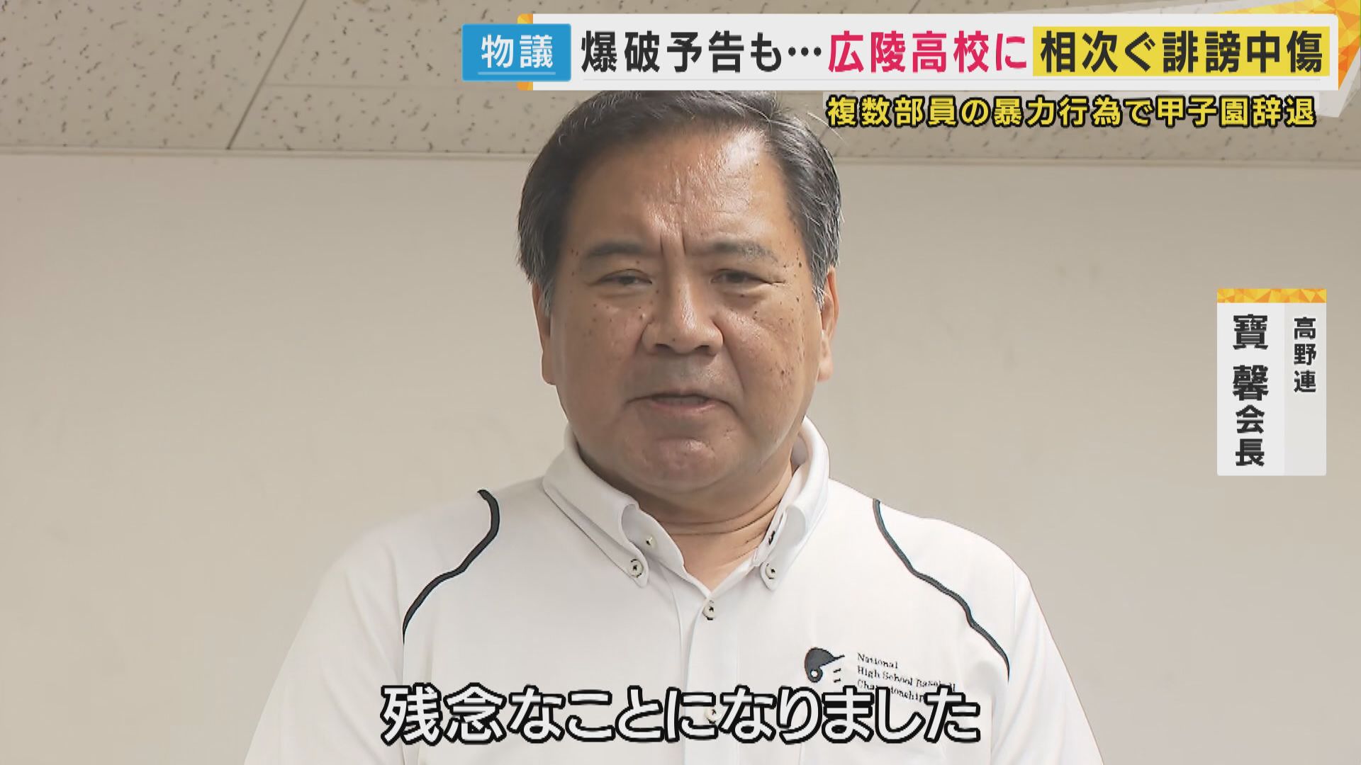 【日本高野連・寶馨会長】「報告書に上がっていなかったようなことについては、対処のしようがなかったというのは正直なところ。(一回戦の対戦校)旭川志峯に、ご迷惑おかけしたことになりますし、県大会の段階でも、対戦校が広陵高校に負けて敗退していったわけですから残念なことになりました」