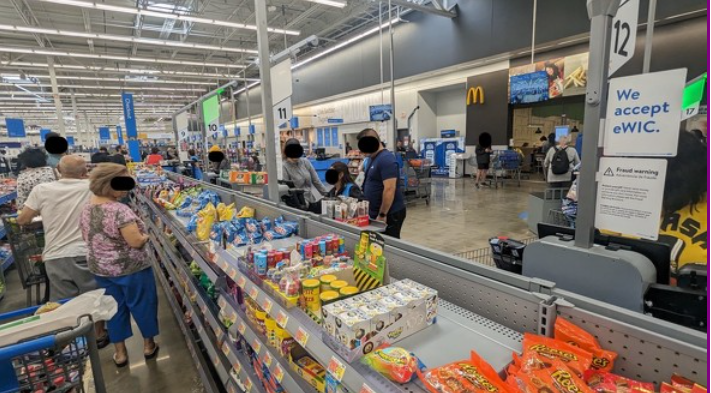 アメリカのウォルマートでは、レジ待ちの列を「低めの商品陳列棚」で区分し、様々な『ついで買い商品』を並べる工夫をしています。