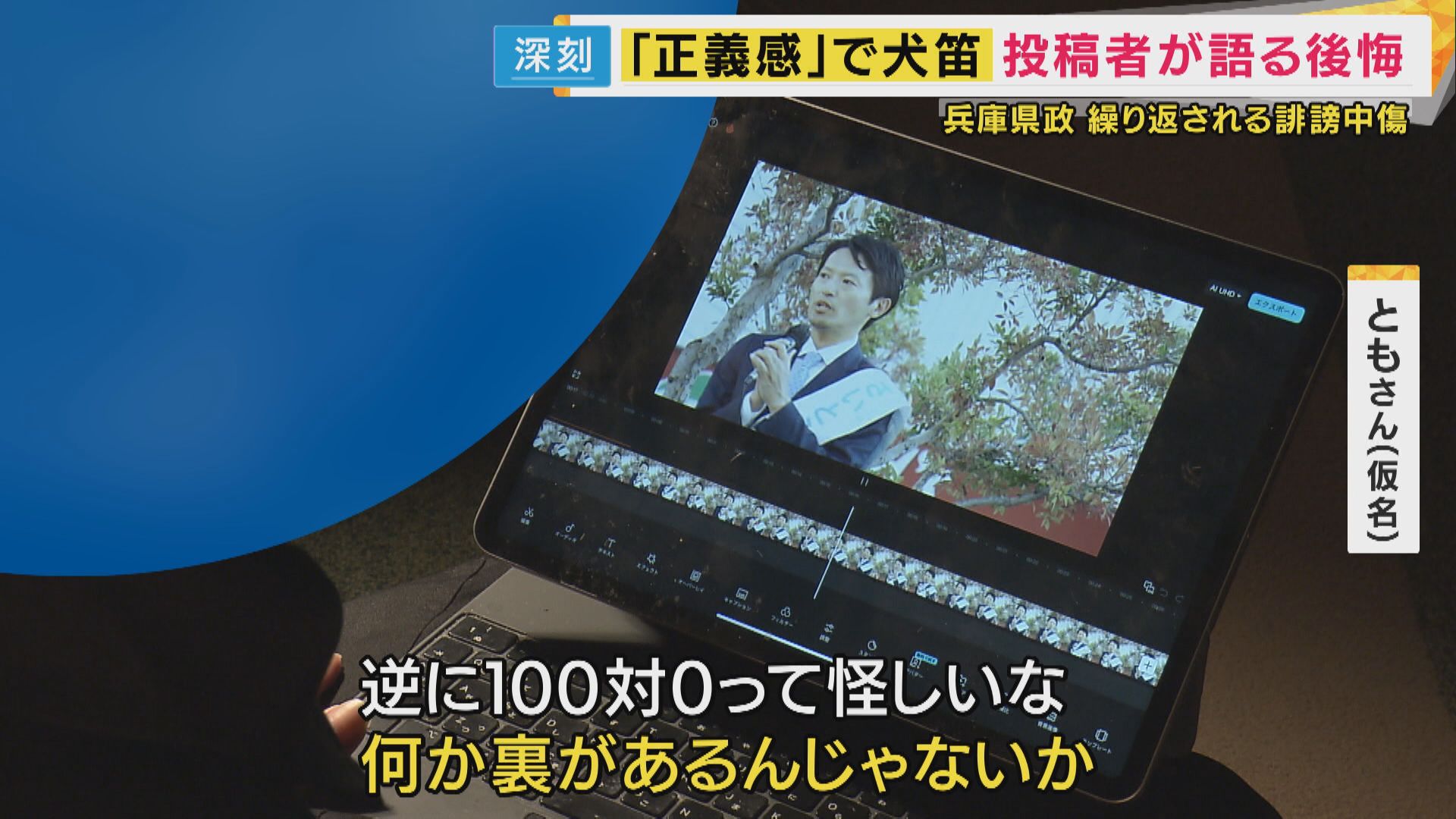 【ともさん(仮名)】「世論もメディアも100対0で斎藤さん批判を展開されていたので、逆に100対0って怪しいな、何か裏があるんじゃないか。一番応援しようと思ったのは、(NHK党の)立花(党首)が登場した時ですね。立花の言っていることとか、ネットで出回っている情報を元に発信していた」