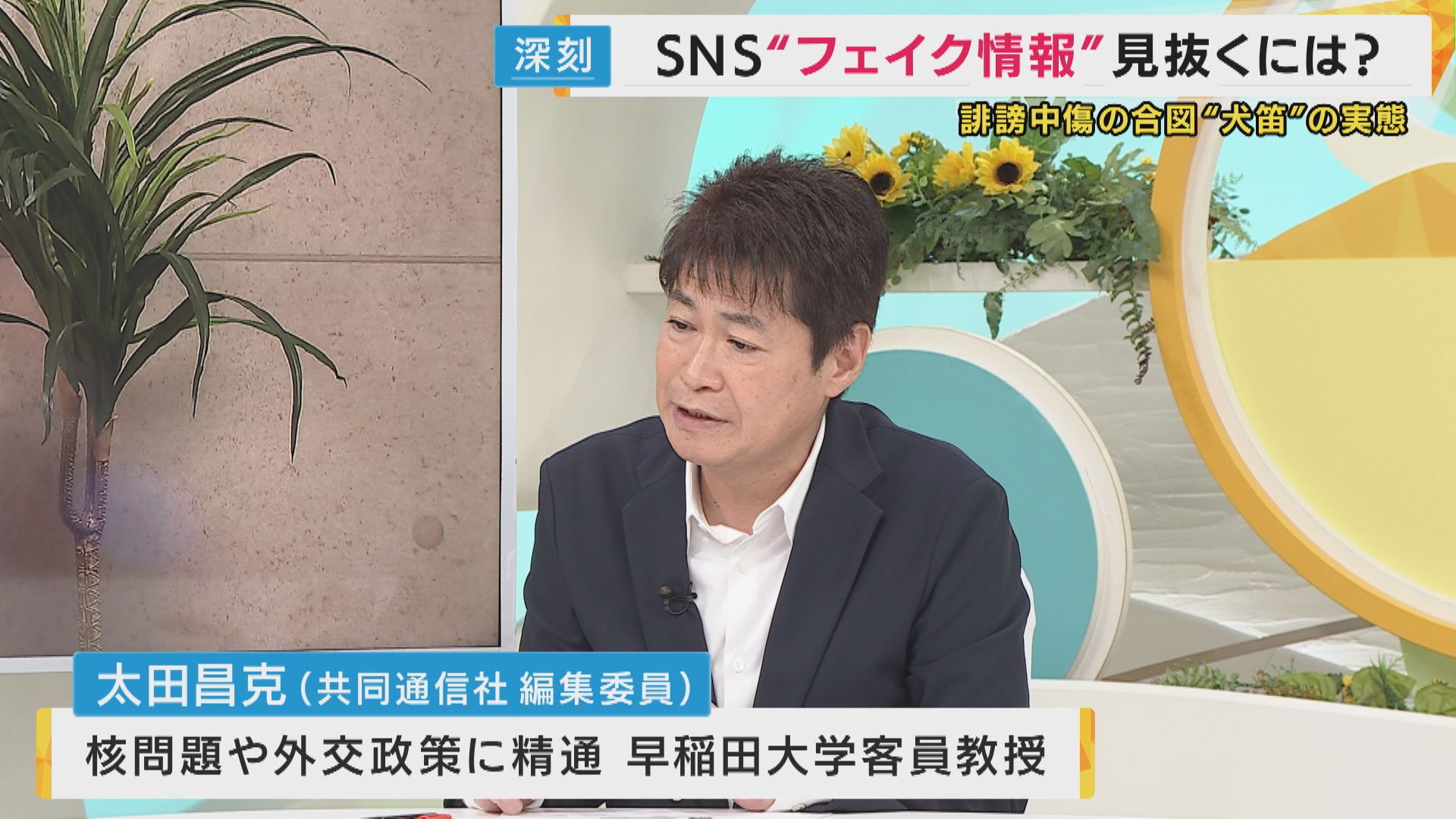 SNSでの誹謗中傷に詳しい国際大学の山口真一准教授によると、「フェイク情報を見聞きした3700人に調査したところ、フェイクだと見抜けたのは14.5%のみ。『自分は大丈夫』と自己評価が高い人ほどフェイク情報にだまされやすい」ということです。