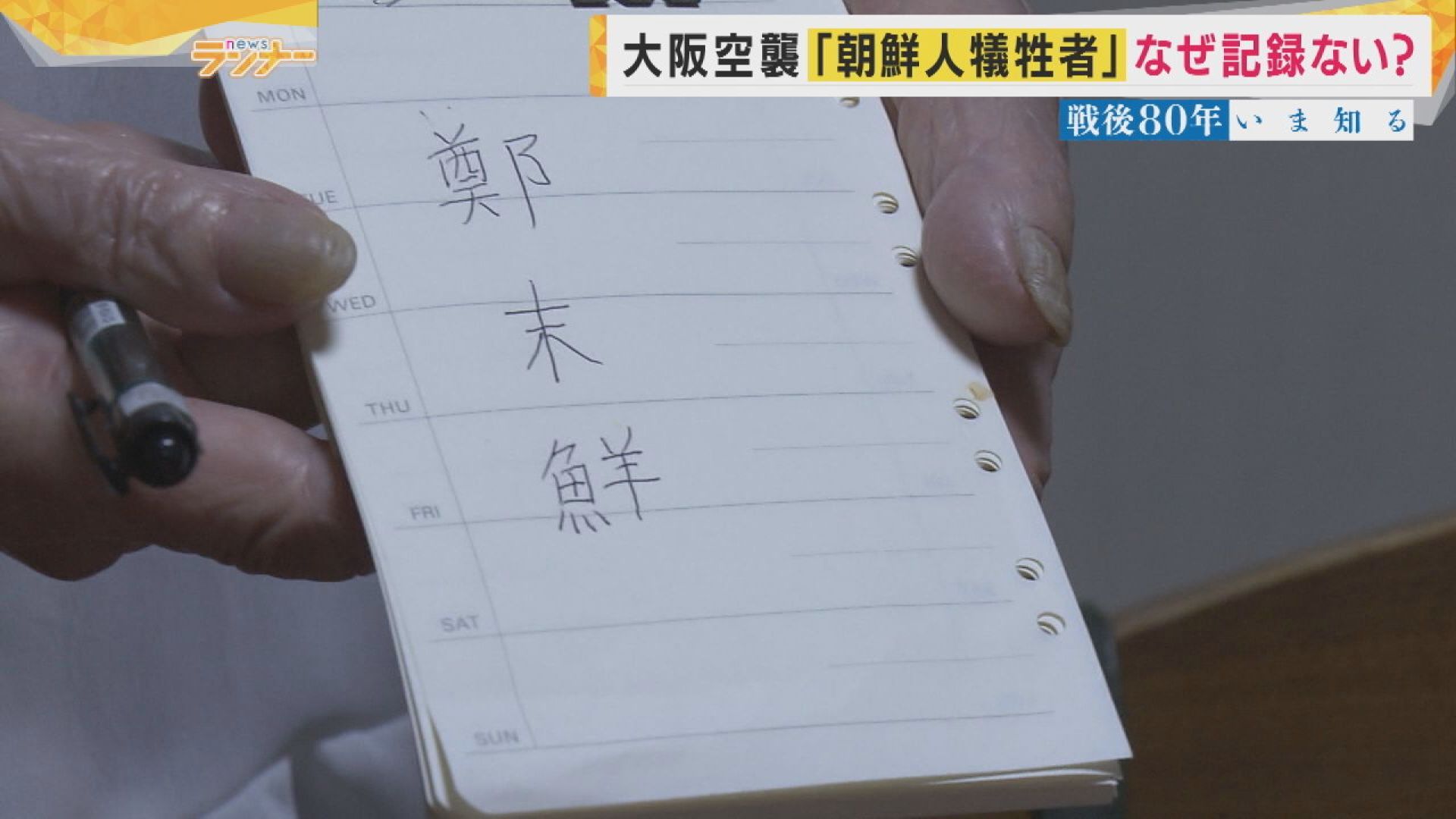 「差別に苦しみ自分のルーツ語れず」残らなかった朝鮮人犠牲者の記録 大阪空襲 70歳を過ぎて「本名で生きたい」経験語りだした女性 犠牲者名簿の父は通名「本名に改めた」男性 2025年08月14日