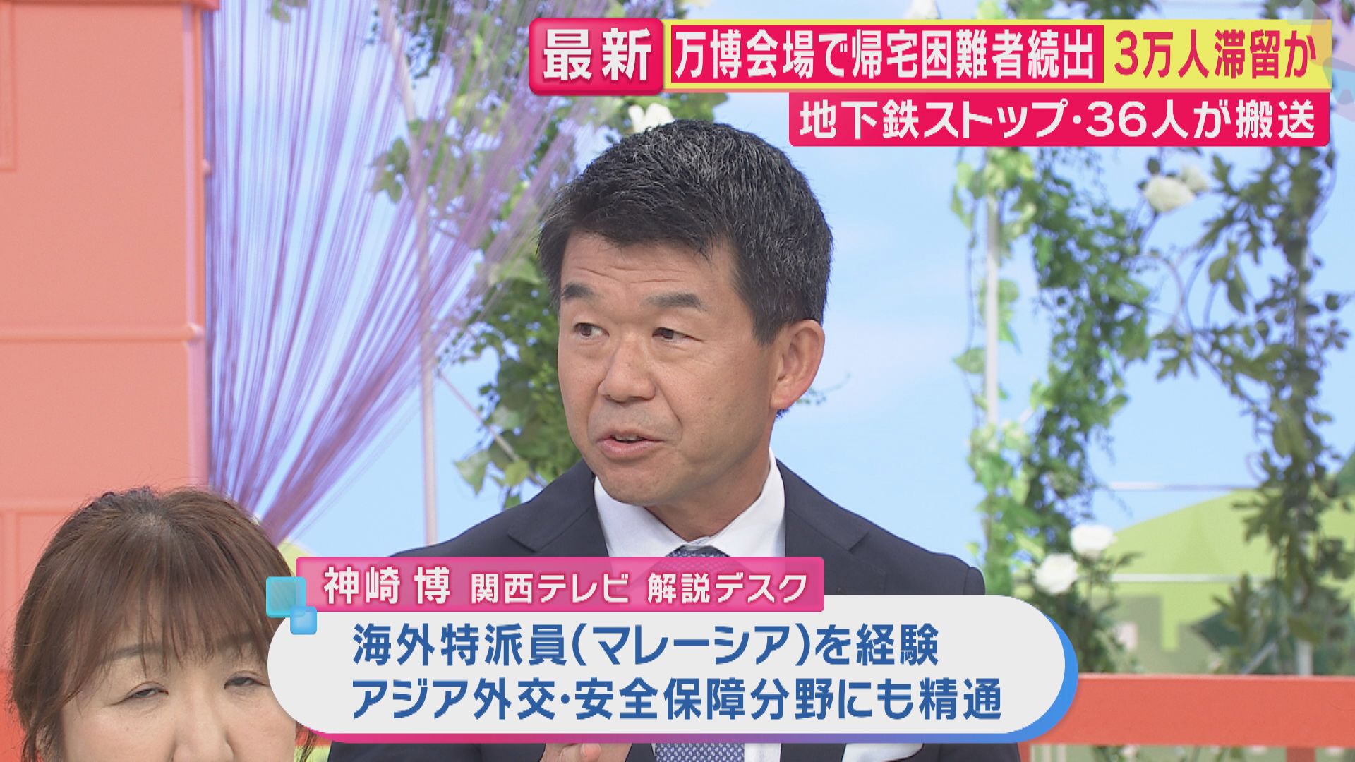 この路線は、万博会場の最寄り駅の夢洲駅につながる唯一の鉄道ルートで、平常時間の午後10時近くに起きたトラブル。帰宅困難になった人たちで大混雑となりました。