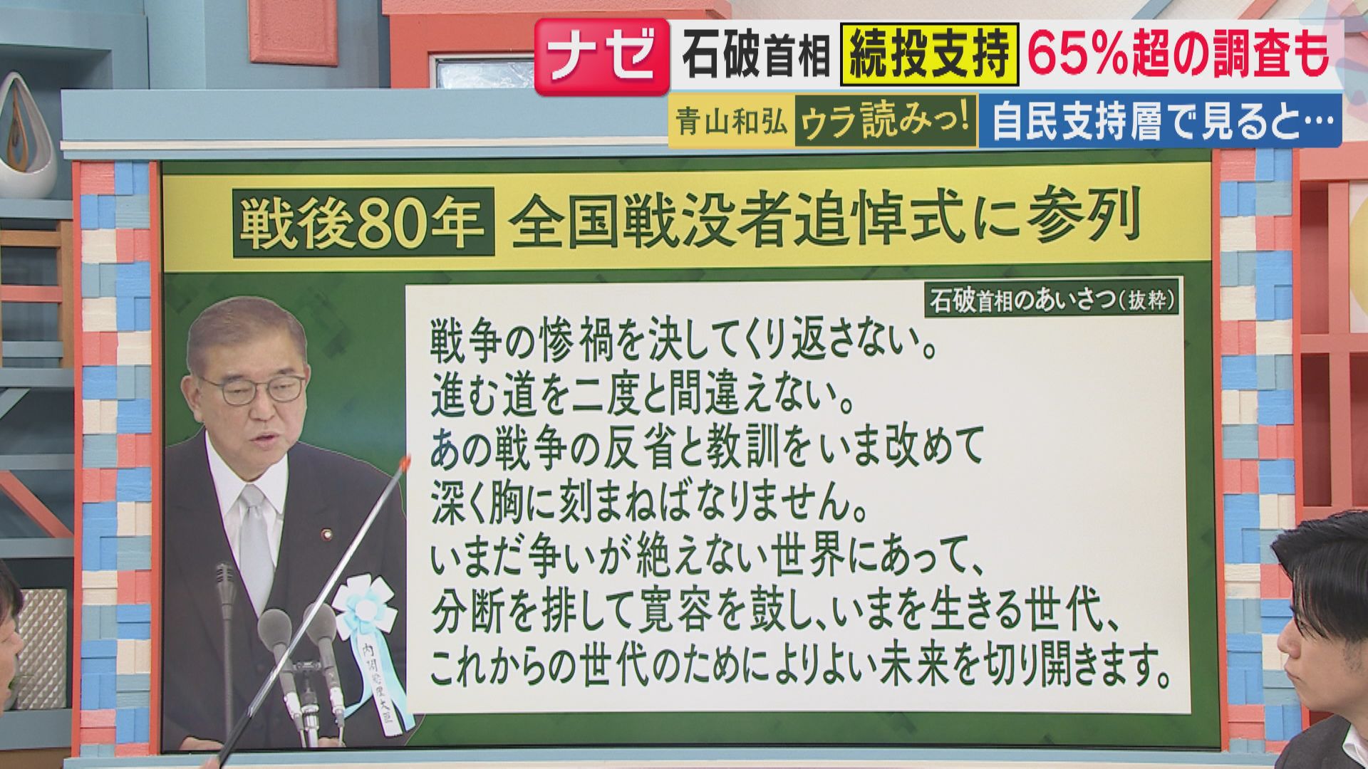 【政治ジャーナリスト 青山さん】「かなりリベラルですね。きょう=8月15日の戦後80年の戦没者追悼式でのあいさつでも、そうした石破カラーがにじんでいました」