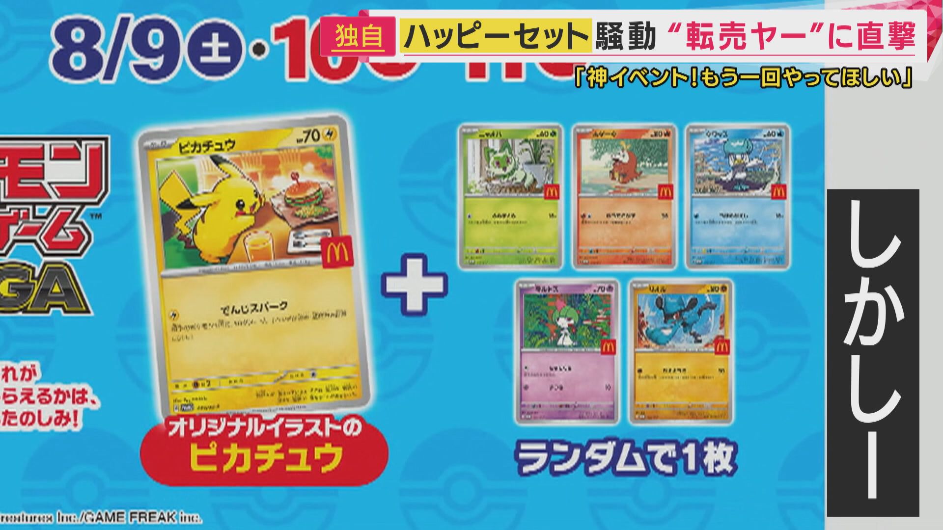 マクドナルドは8月9日から3日間、ポケモンとのコラボ第一弾として「ポケモンカード」が2枚ついてくるハッピーセットを発売。
