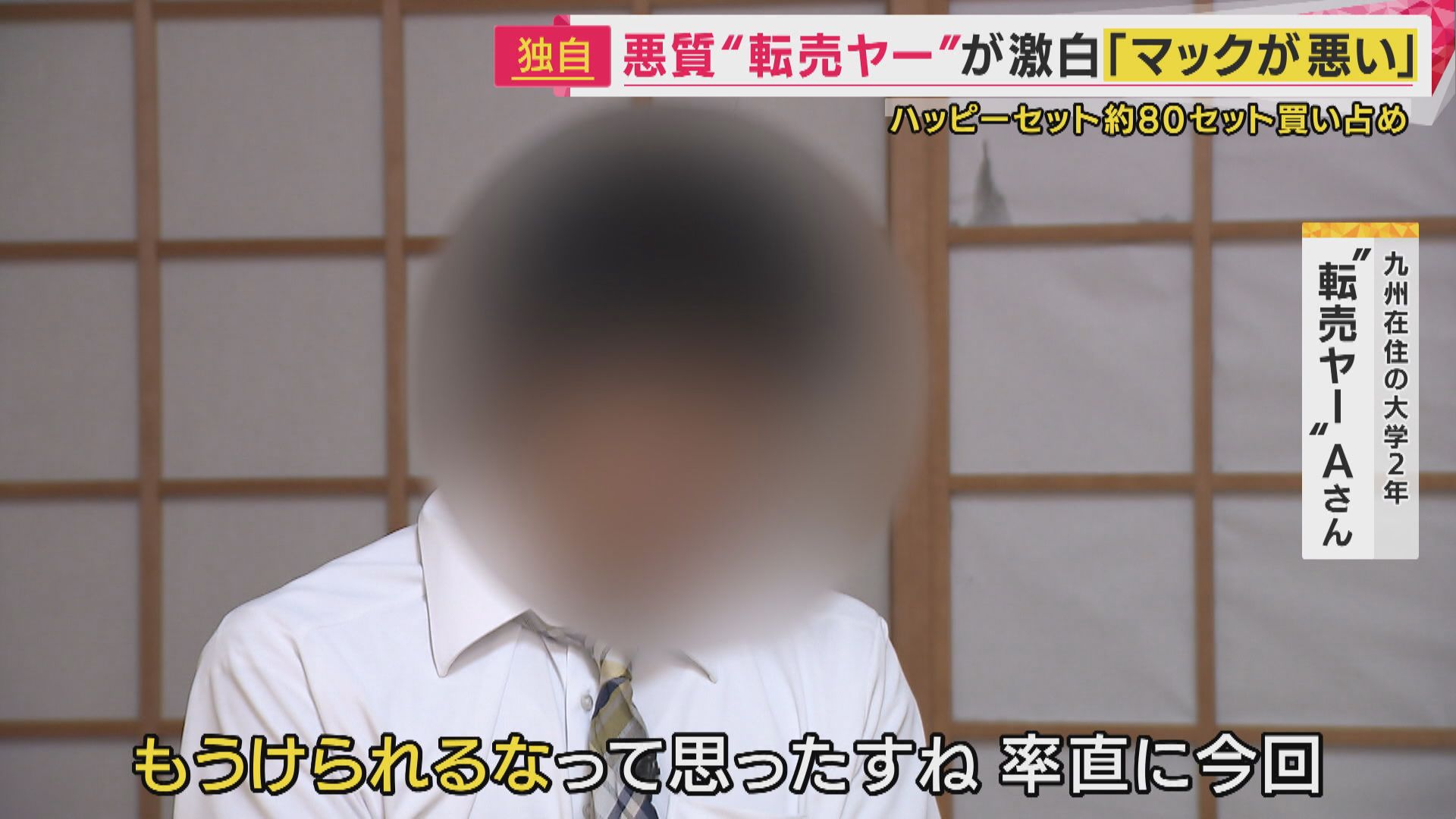 関西テレビは、大量にこのハッピーセットを購入し、転売して10万円の利益を得たという渦中の“転売ヤー”を独自取材しました。