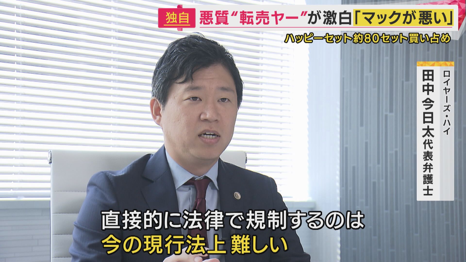 【ロイヤーズ・ハイ 田中今日太代表弁護士】「直接的に法律で規制するのは、今の現行法上、難しい。であれば販売企業側が、自主的に規制をかけていくことが大事。炎上や風評のリスクがあると、消費者を裏切ることになるので」