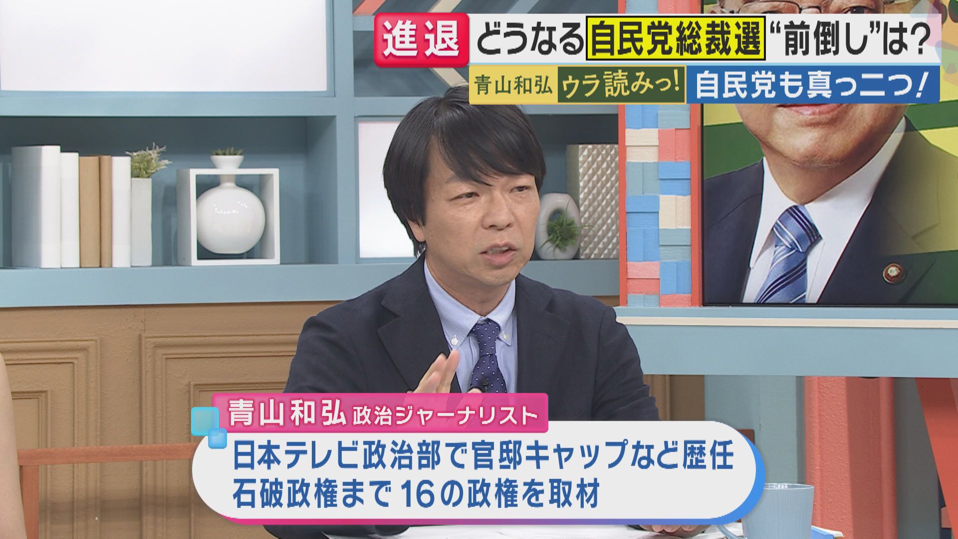【青山和弘さん】「(総裁選前倒しを希望する議員の中には、)政府の役職についている人も結構いるんですよ。副大臣とか、政務官とか。『お前そんな総理大臣に歯向かうんだったら、辞めてから言えよ』みたいな批判もあり得るわけです」