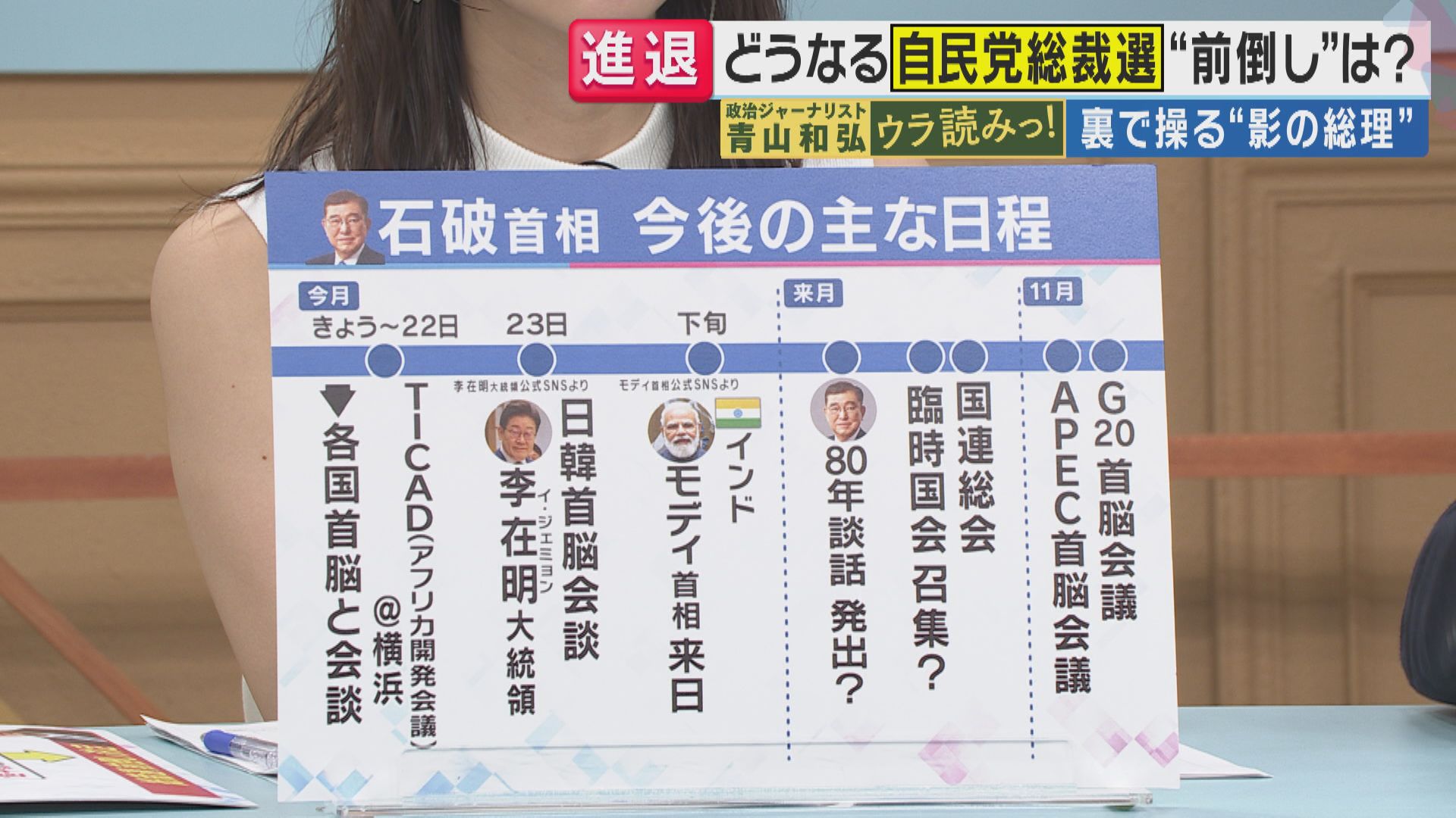 【青山和弘さん】「15日は終戦の日なので、そこで追悼式とかもありましたので、その前2日ぐらいは全く日程が入ってなかったんですよ。結構ゆっくりできたかなと思ったんだけども、こういった文言を考えてたのプラス、TICADというアフリカ開発会議。この後は韓国の大統領や、インドの首相もやってきますので、こうしたことの予習で、『本当に忙しかった』、『全く休む暇がなかった』と語っていました」